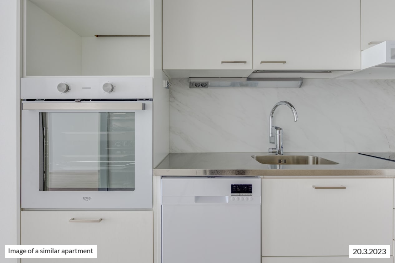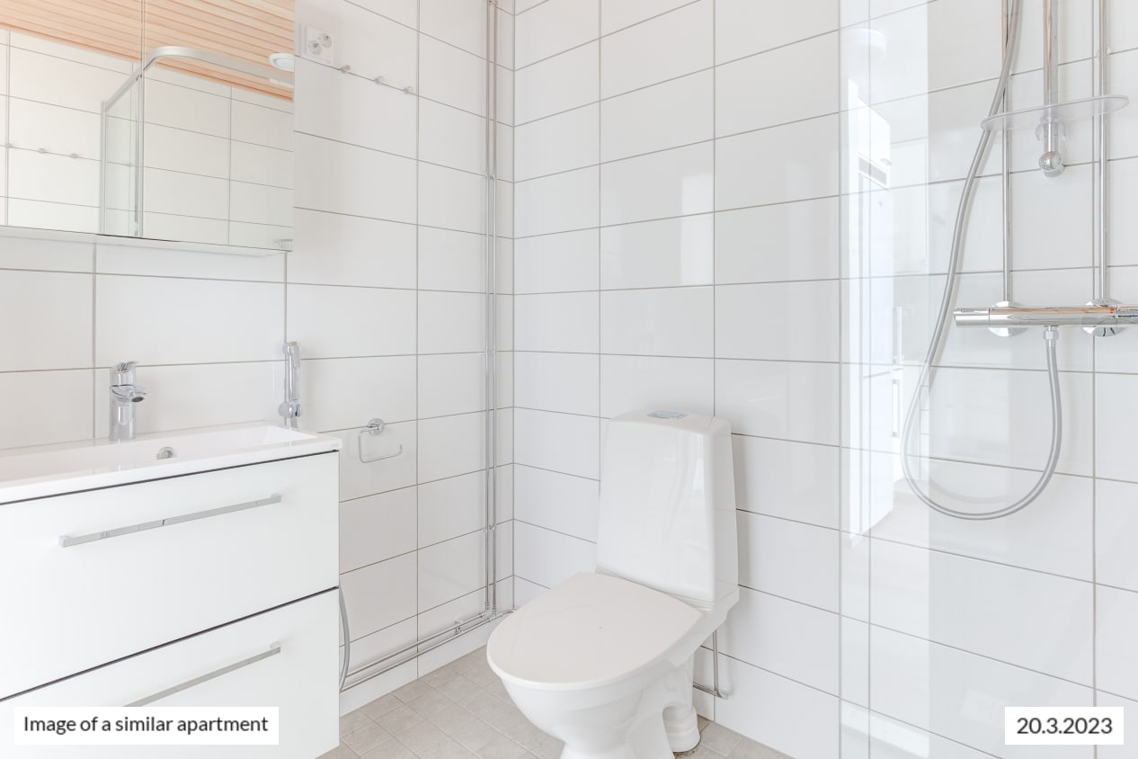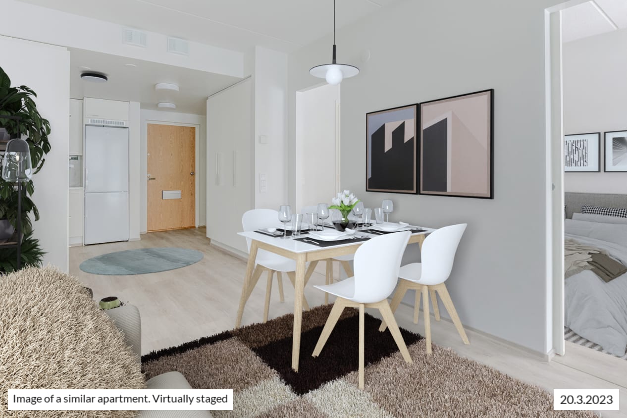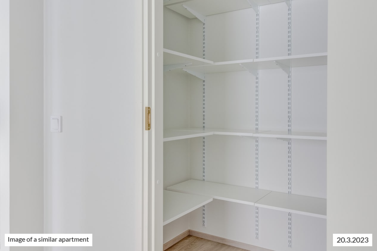 This efficiently laid out one-bedroom home offers northwest-facing views of the courtyard. The functional kitchen is slightly separate from the living room yet still part of the same, airy space. It is easy separate the living space into a lounging area with your sofa and a dining area, for example. In the summer, you can extend your living space to your own, glassed-in balcony. How about breakfast on your balcony, listening to the birds and the homely sounds from the courtyard?