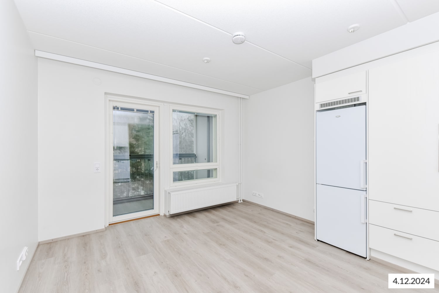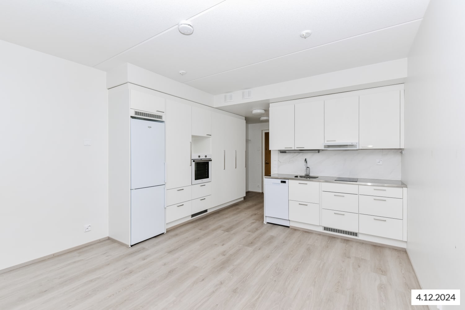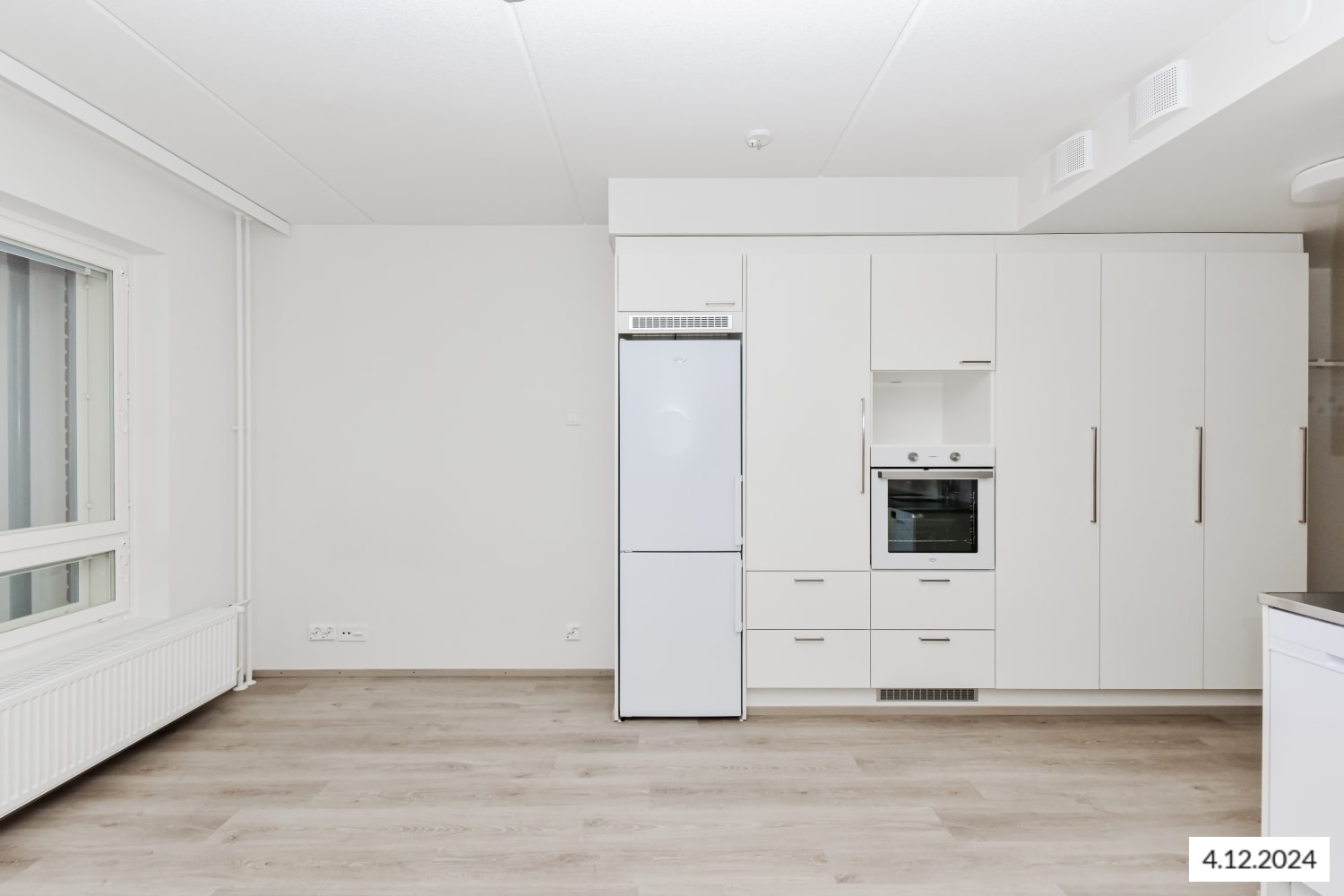 The bathroom floors are in dark grey 10x10 cm tiles and the walls in large white tiles. The ceilings are in alder wood panelling. The bathrooms have two floor drains. The bathrooms come with Finnish, durable and easy-care Kide range furniture, and most of the apartments also have a laundry cabinet. The bathrooms have space and hook-ups for a washing machine and dryer. The wet rooms have wet underfloor heating. The apartment walls are painted in an off-white shade, and the floors are in footfall sound-reducing pale oak-effect laminate. In the loft-style apartments, the frame of the wooden stairs is white and the bannister and steps are stained in dark grey. The windows are fitted with Venetian blinds and feature double curtain tracks. The modern kitchens are equipped with an induction cooktop with two or four burners. Other appliances are white: a 45- or 60-cm dishwasher, cooker hood, oven and either a fridge-freezer or a separate fridge and freezer. There is space for a microwave in the kitchen units. The buildings mainly feature centralised mechanical supply and exhaust ventilation with heat recovery, and the business spaces/loft-style apartments have space-specific supply and exhaust ventilation with cooling. The property is heated with geothermal energy. Heat distribution takes place via the heat distribution room though hot-water radiator heating.