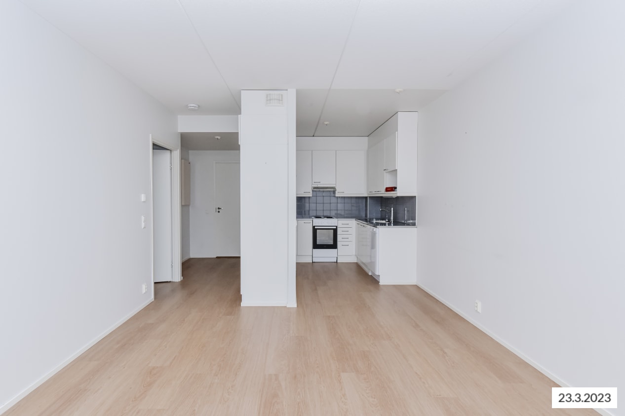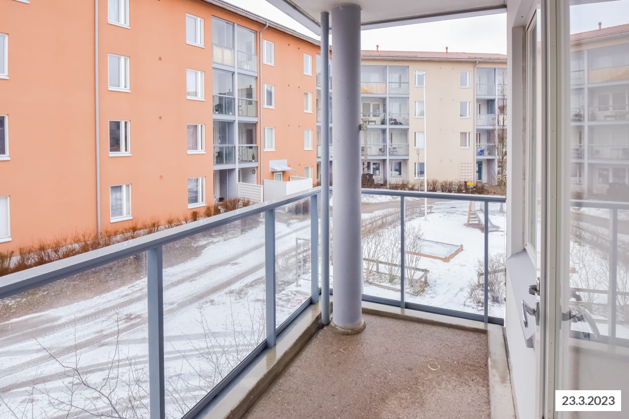 The pleasant low-rise apartment building in Tarhurintie street has two sections with light-filled, nicely laid out rental homes. The layouts are practical and easy to furnish. The homes on the upper floors have a balcony or French balcony, while those on the ground floor have a private ground-level terrace. There is space and hookups for a washing machine in the spacious bathrooms.