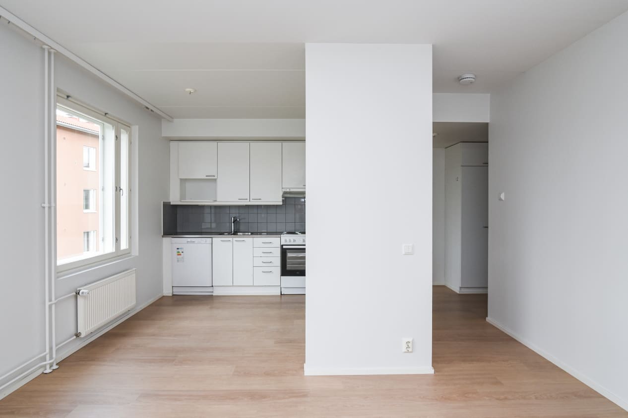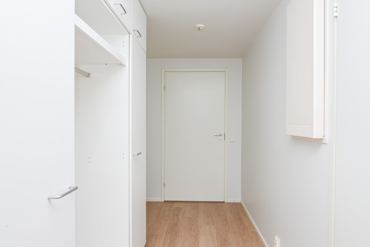 The pleasant low-rise apartment building in Tarhurintie street has two sections with light-filled, nicely laid out rental homes. The layouts are practical and easy to furnish. The homes on the upper floors have a balcony or French balcony, while those on the ground floor have a private ground-level terrace. There is space and hookups for a washing machine in the spacious bathrooms.