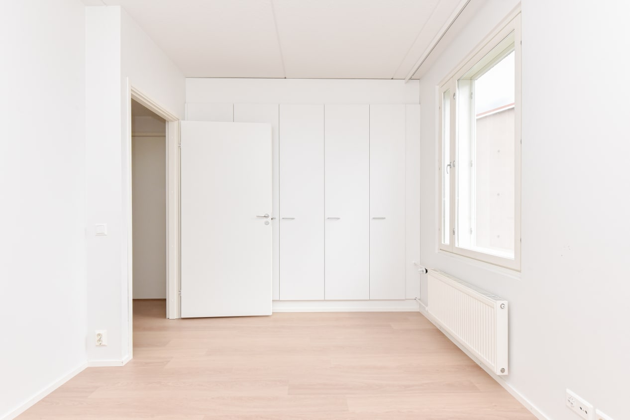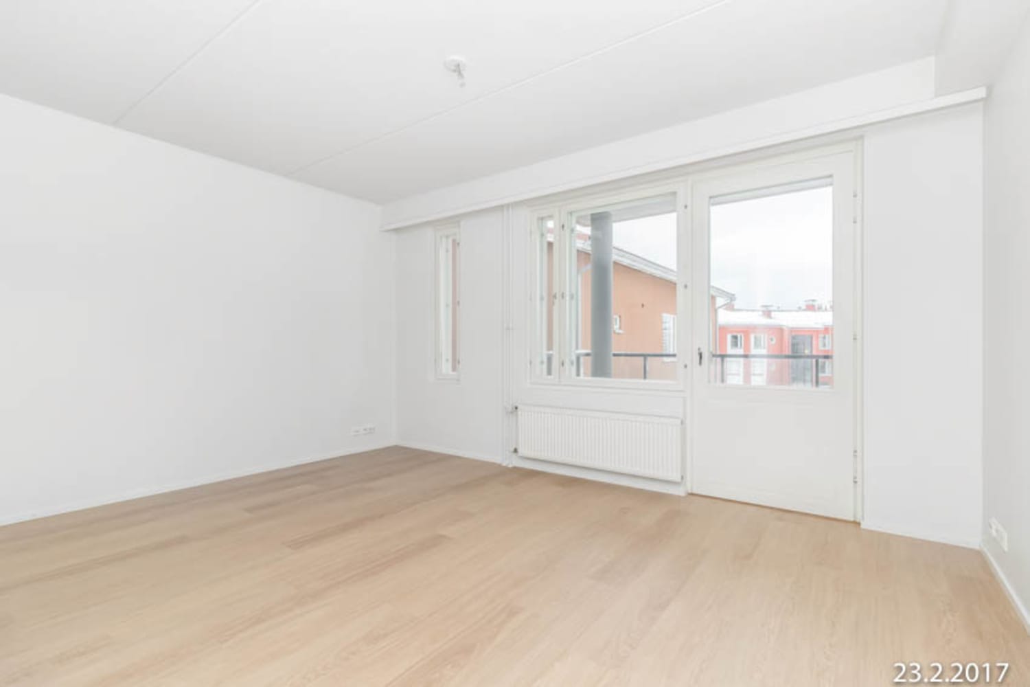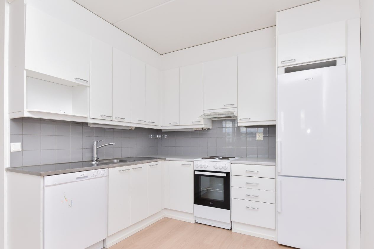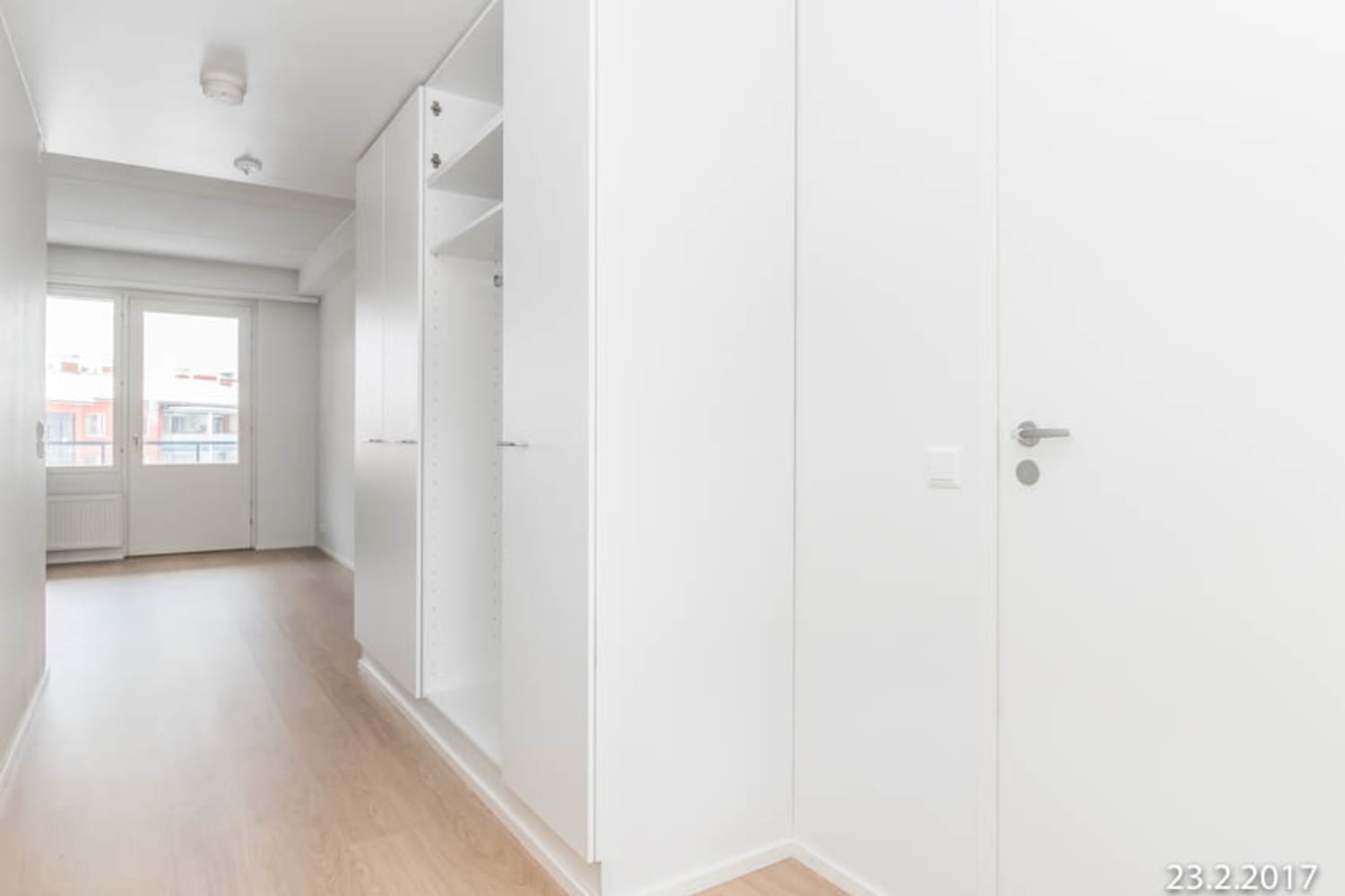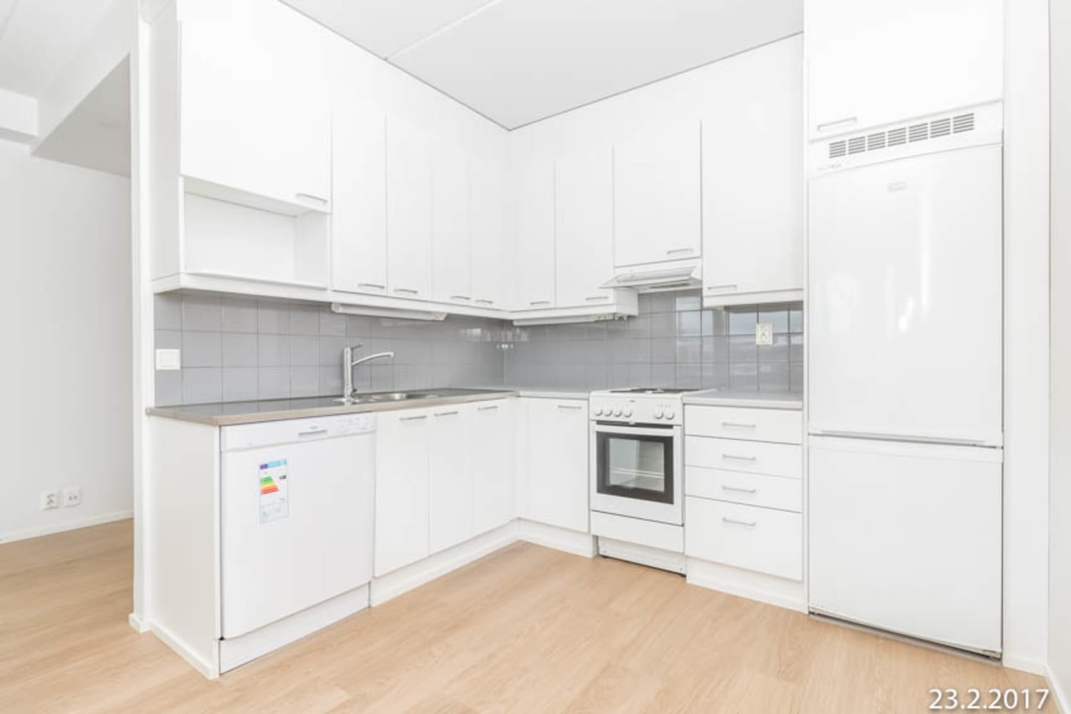 The pleasant low-rise apartment building in Tarhurintie street has two sections with light-filled, nicely laid out rental homes. The layouts are practical and easy to furnish. The homes on the upper floors have a balcony or French balcony, while those on the ground floor have a private ground-level terrace. There is space and hookups for a washing machine in the spacious bathrooms.