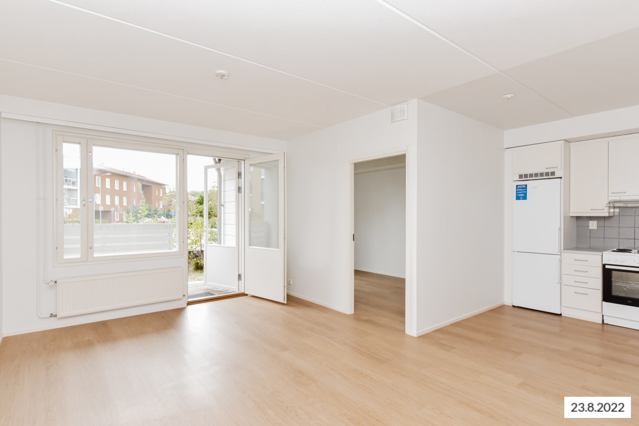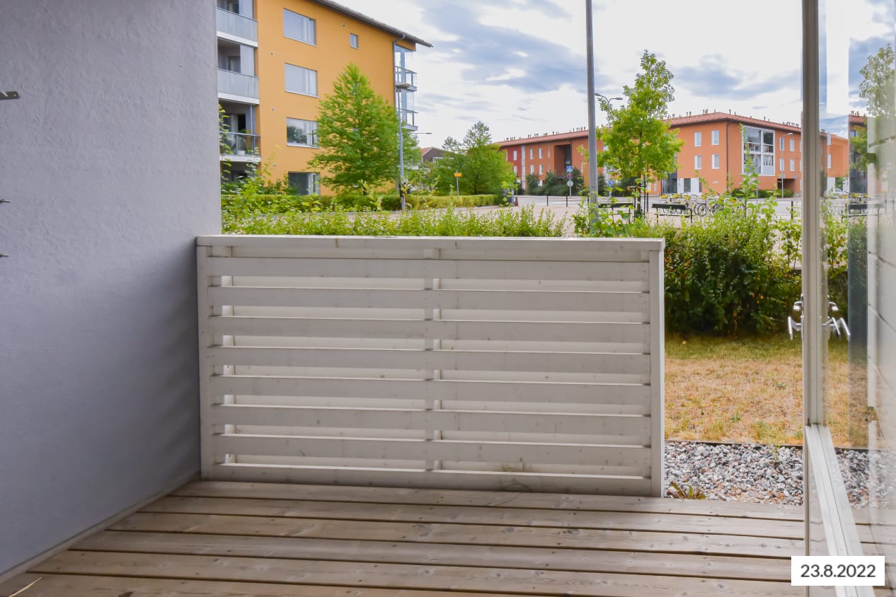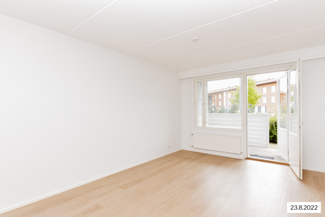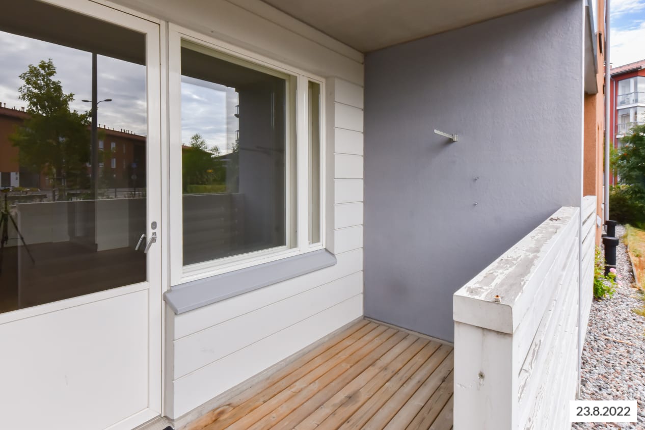 The pleasant low-rise apartment building in Tarhurintie street has two sections with light-filled, nicely laid out rental homes. The layouts are practical and easy to furnish. The homes on the upper floors have a balcony or French balcony, while those on the ground floor have a private ground-level terrace. There is space and hookups for a washing machine in the spacious bathrooms.