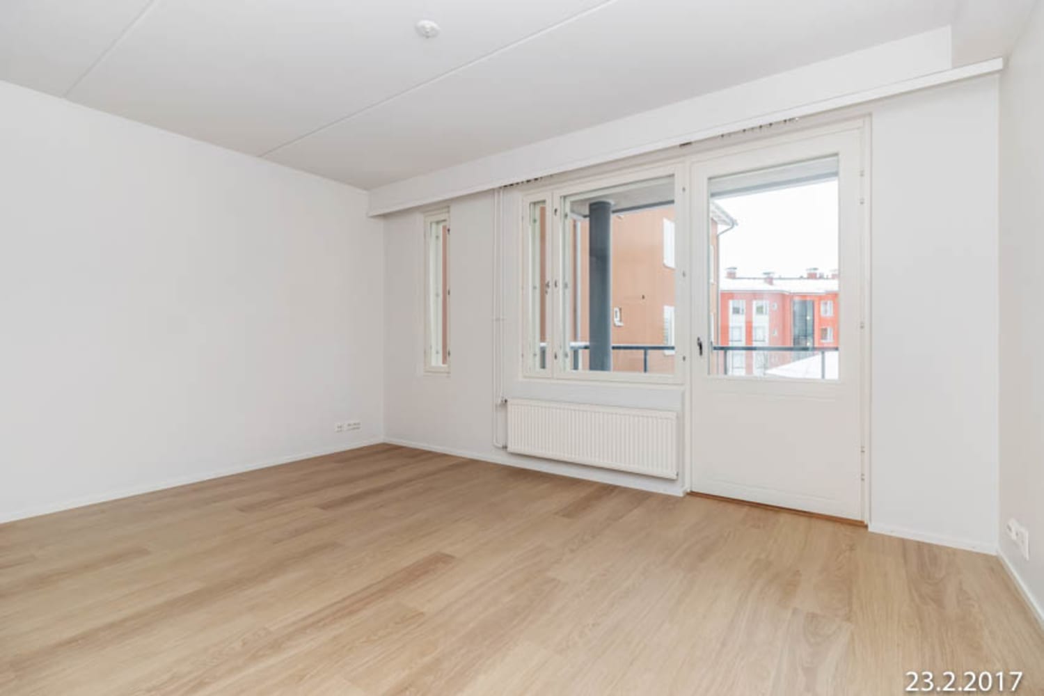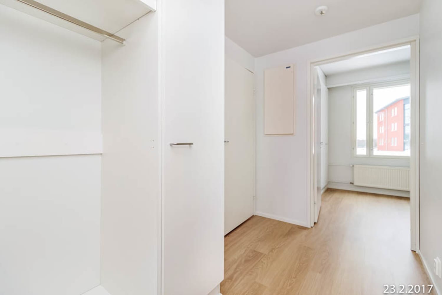 The pleasant low-rise apartment building in Tarhurintie street has two sections with light-filled, nicely laid out rental homes. The layouts are practical and easy to furnish. The homes on the upper floors have a balcony or French balcony, while those on the ground floor have a private ground-level terrace. There is space and hookups for a washing machine in the spacious bathrooms.