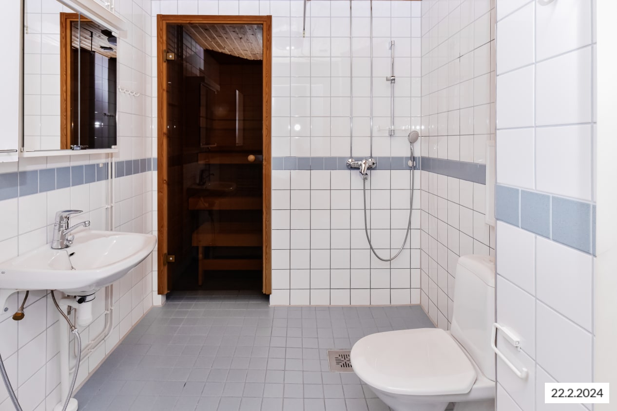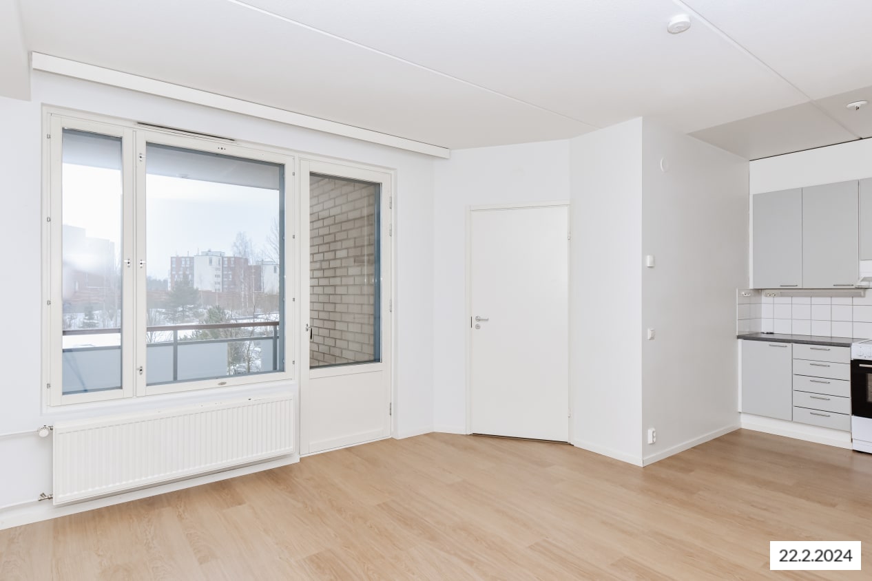 Located right by the border between Helsinki and Vantaa, all of the apartments in this multiple-level building have a balcony or terrace facing west or south. The hallways, living rooms and kitchens have oak strip parquet flooring and other rooms cushioned vinyl flooring. The sauna and shower room floors are tiled. The apartments with a kitchenette have a fridge-freezer and others also have space for another fridge or freezer. The apartments have space for a dishwasher and washing machine. Some of the apartments have a glassed-in balcony.