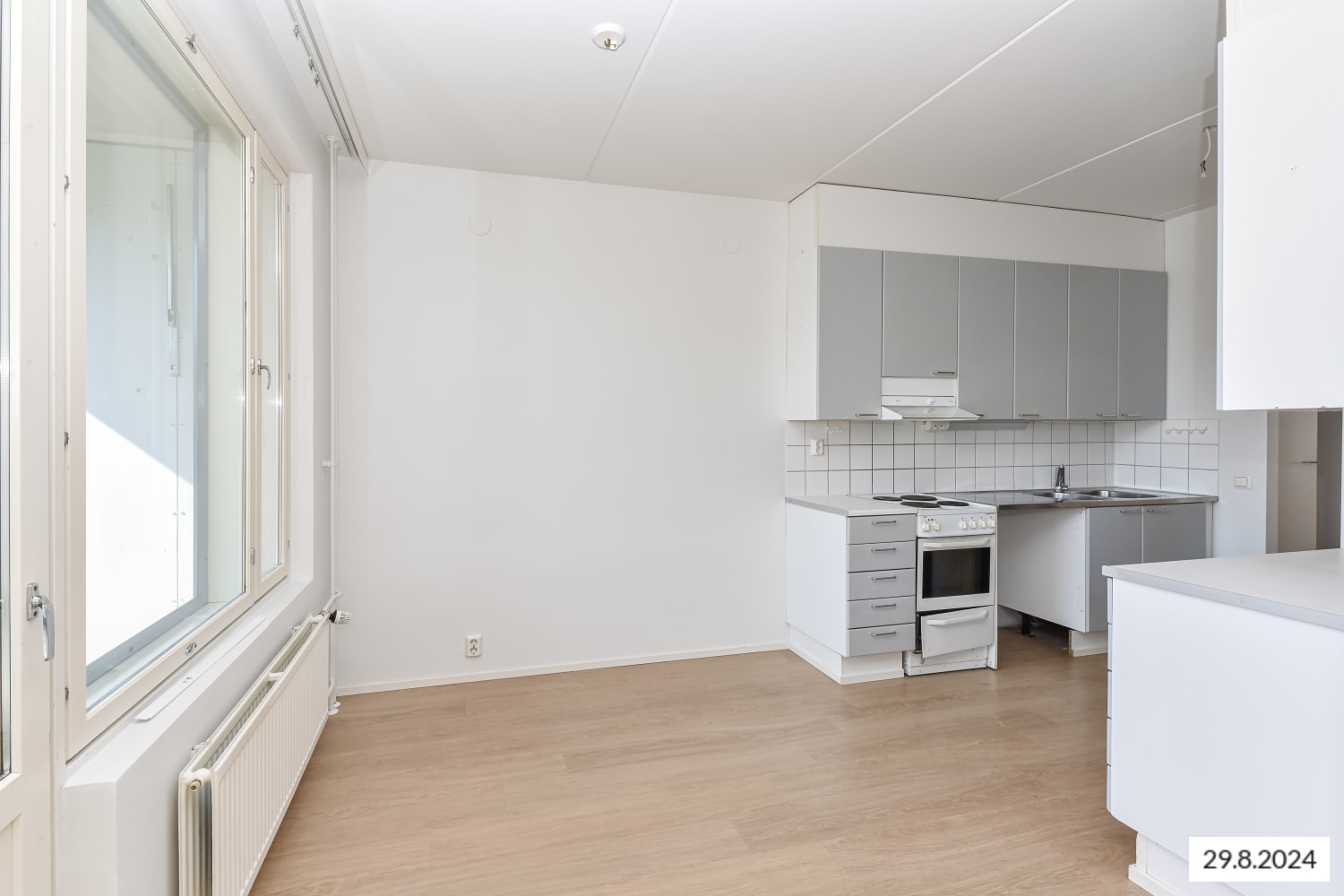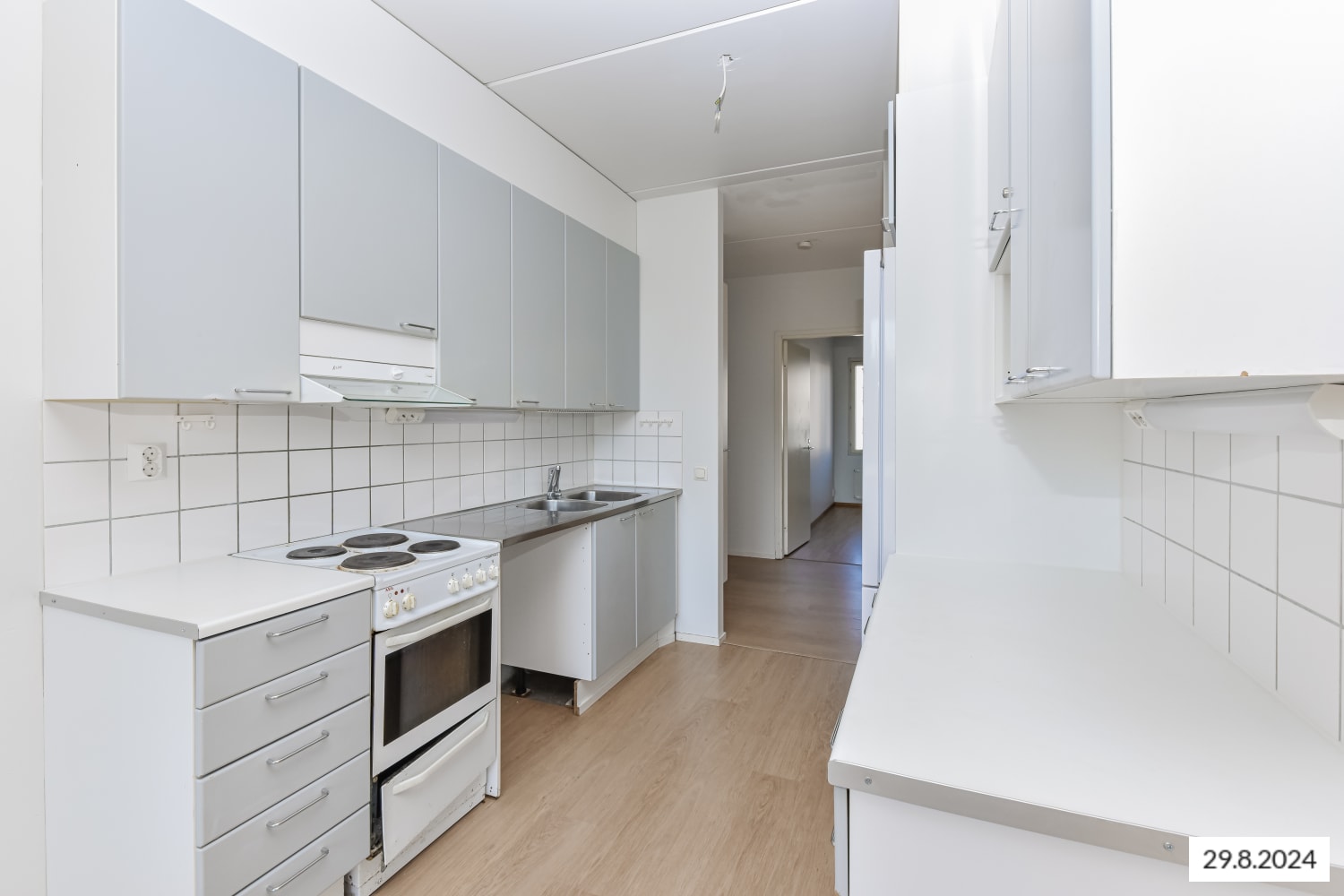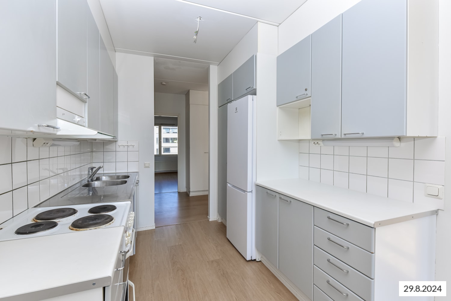 The flooring in the home is clean laminate. The sauna and bathroom have tiled floors. The kitchen is equipped with a fridge-freezer and has space for an additional cooling appliance. There are provisions for both a dishwasher and a washing machine in the apartment. Could this be your new rental home?