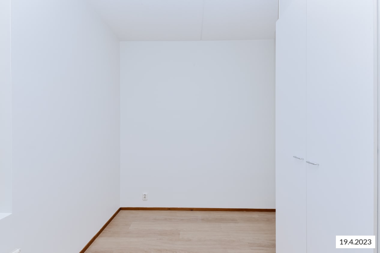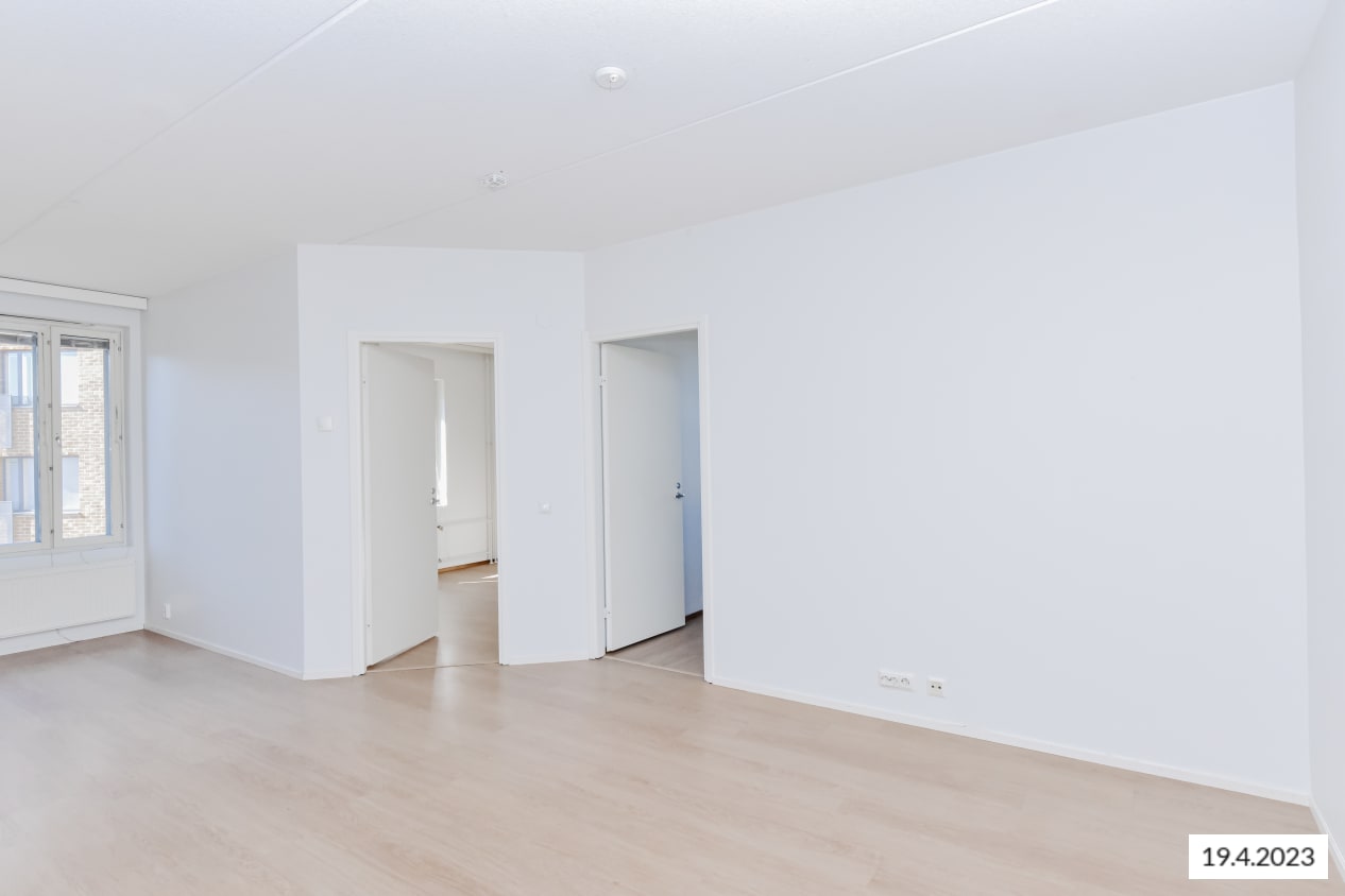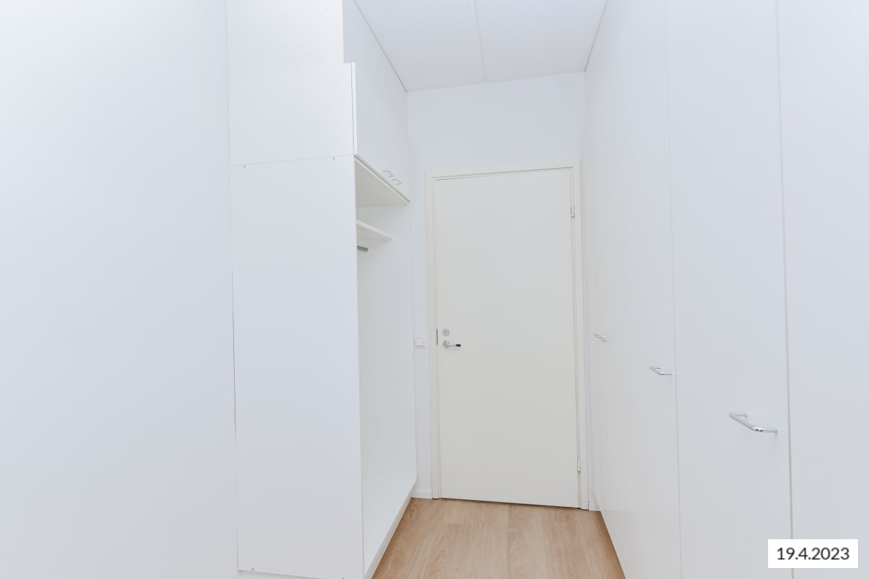 This understated three-room apartment provides an excellent and neutral foundation for any interior design style. The floors are light oak-colored laminate, and the walls are painted white. The living room has entrances to two bedrooms and the kitchen area. The balcony, accessible from the living room, adds a sense of spaciousness. The highlight of the home is its private sauna, perfect for relaxation and unwinding.