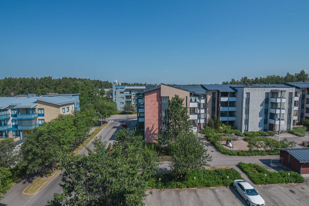 In a cosy apartment building located on the border of Helsinki and Vantaa, a compact two-bedroom home perfect for a small family has become available. The balcony opens to the northwest on Aapramintie. Due to its layout, this rental home is also suitable for a couple working from home, as the smaller bedroom can easily be converted into an office.