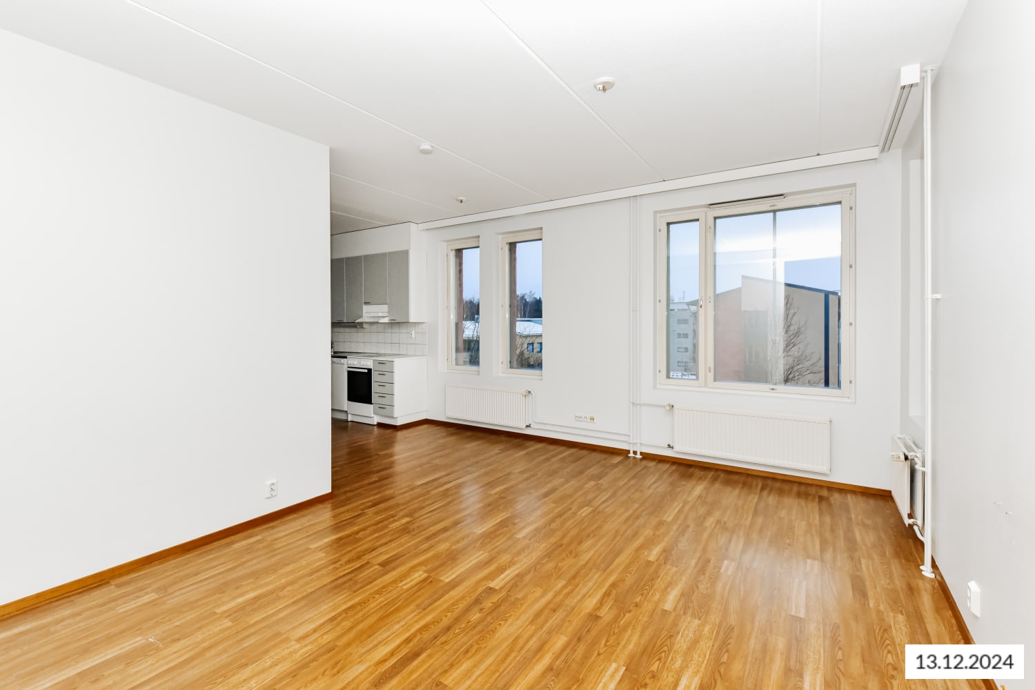 In a peaceful neighborhood, a bright corner apartment on the 4th floor of a cozy building has become available. The west-facing balcony, accessible from the kitchen, overlooks Aapramintie. This compact two-bedroom apartment offers the comfort of a private sauna and a well-designed layout. The kitchen is seamlessly connected to the living room but cleverly set slightly apart from the main seating area.