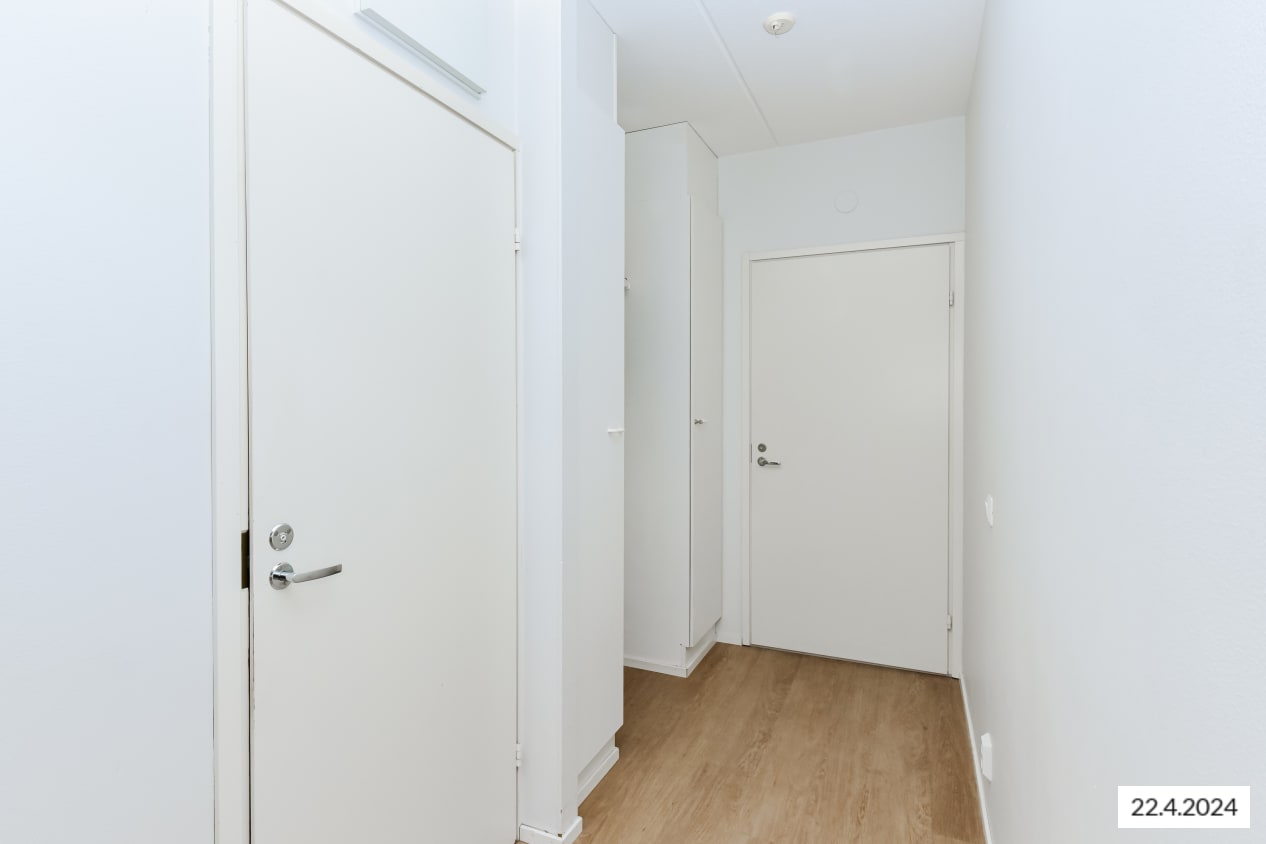 You can heat up your own sauna whenever you like and cool off on the balcony connected to the bedroom. The bathroom has space and connections for washing machines.