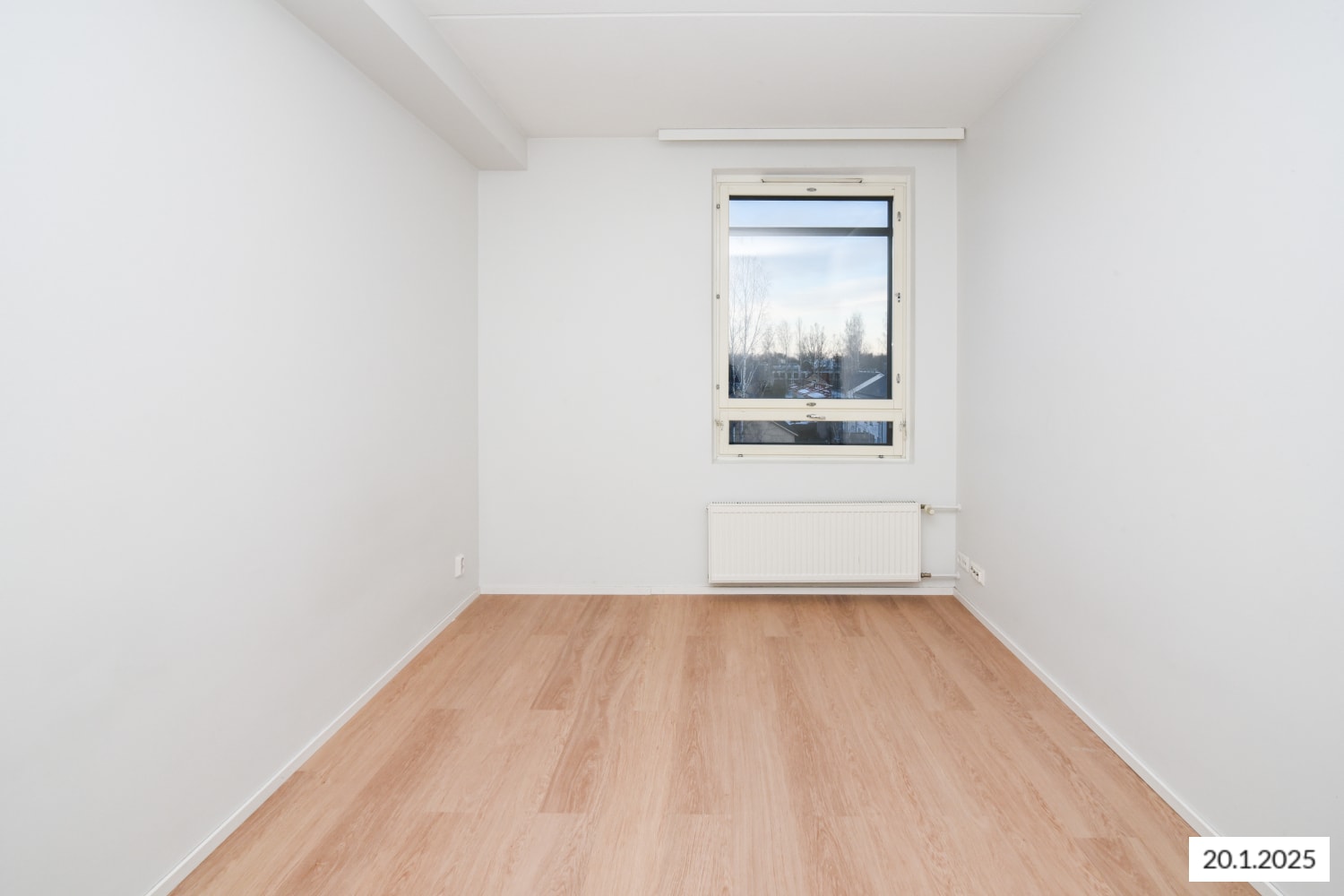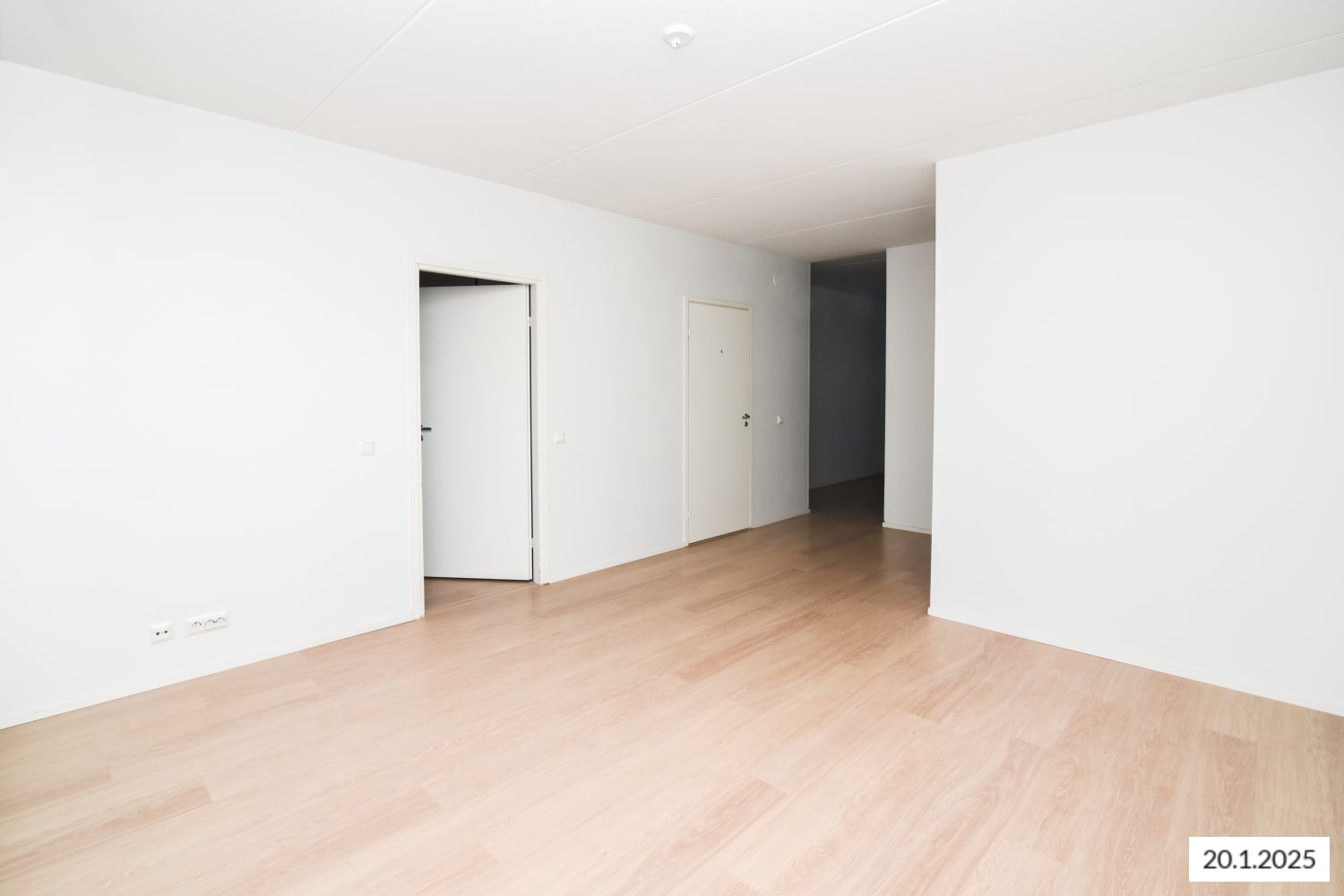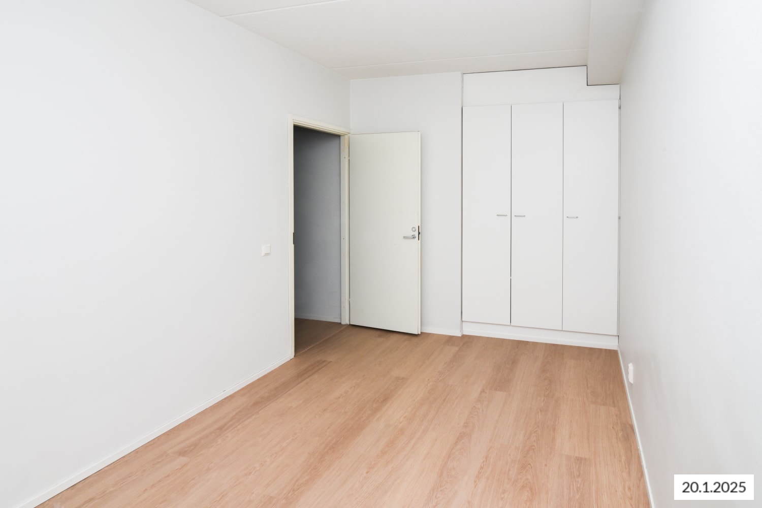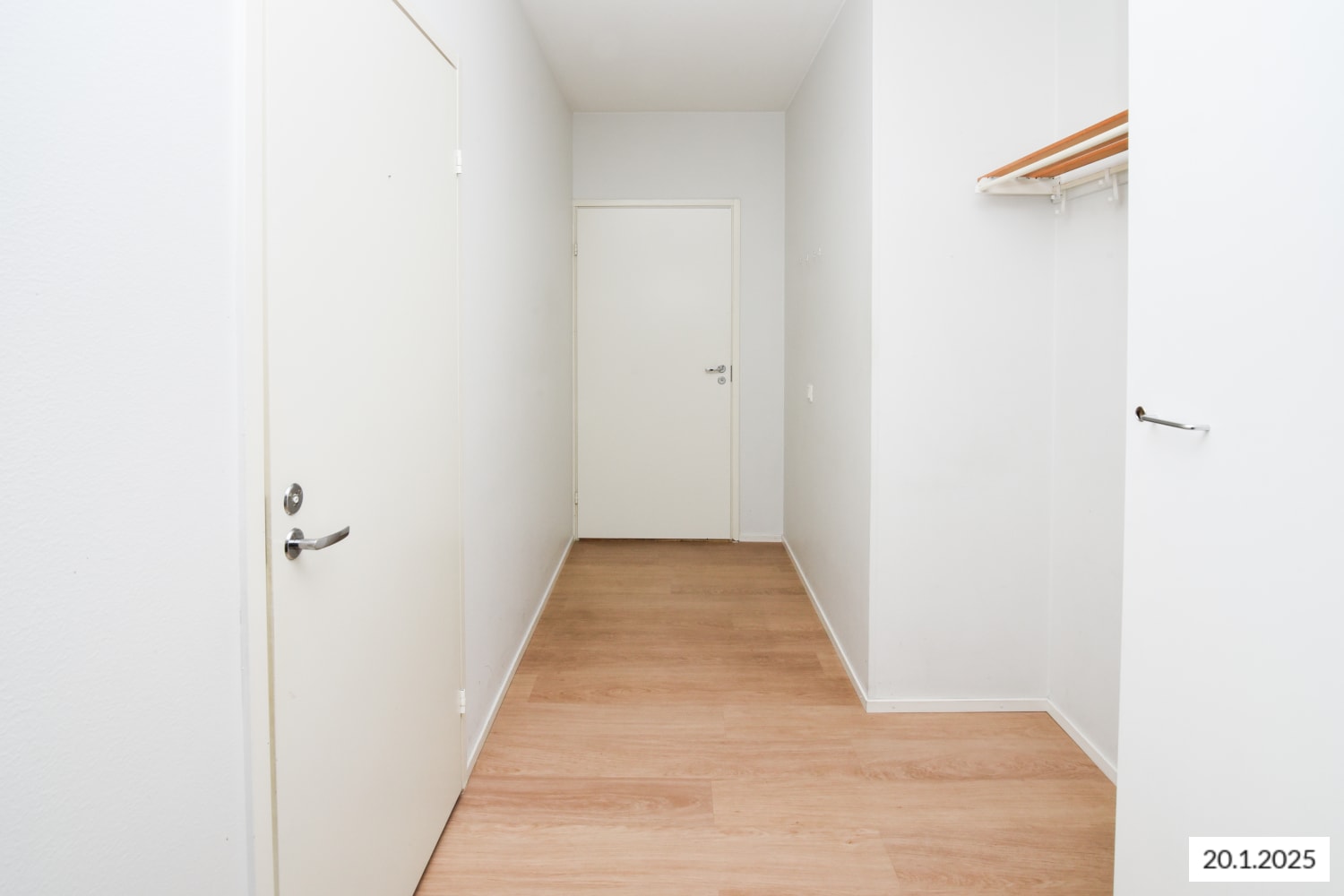 In a peaceful residential building near the Helsinki-Vantaa border, about a kilometre from Myyrmäki’s amenities, a spacious through-apartment with two bedrooms has become available. The balcony offers a south-southwest view towards Vaskipellontie, while the kitchen window overlooks the playground.