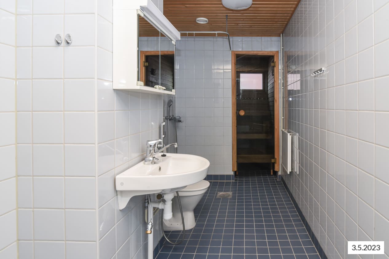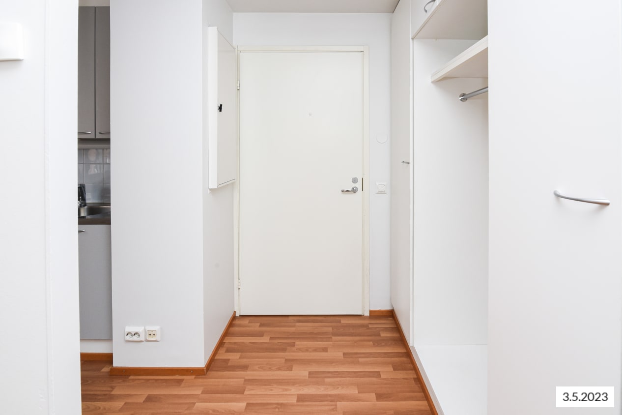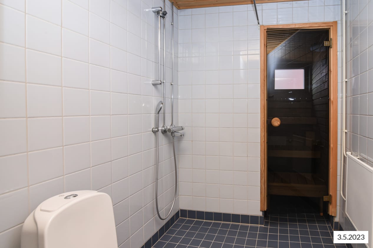 The compact one-bedroom home's highlights include a sauna with a window and a cosy layout. The living room and kitchenette form a spacious open area, while the bedroom is located in a quiet corner. The balcony opens from the living room towards the northeast, overlooking the playground.