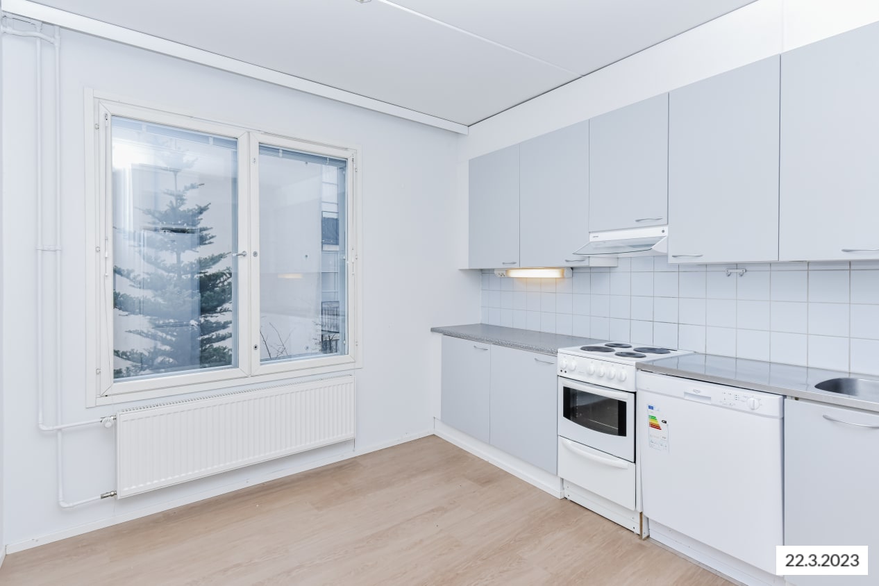 Nestled in a cozy courtyard, this bright and airy one-bedroom apartment is waiting for its next resident. The functional layout includes practical features like a large walk-in closet and a luminous kitchen with ample space for a dining table. The balcony offers an unobstructed view over the courtyard to the northeast, adding to the charm. At the end of a long day, relax in your private sauna, the highlight of this lovely home.