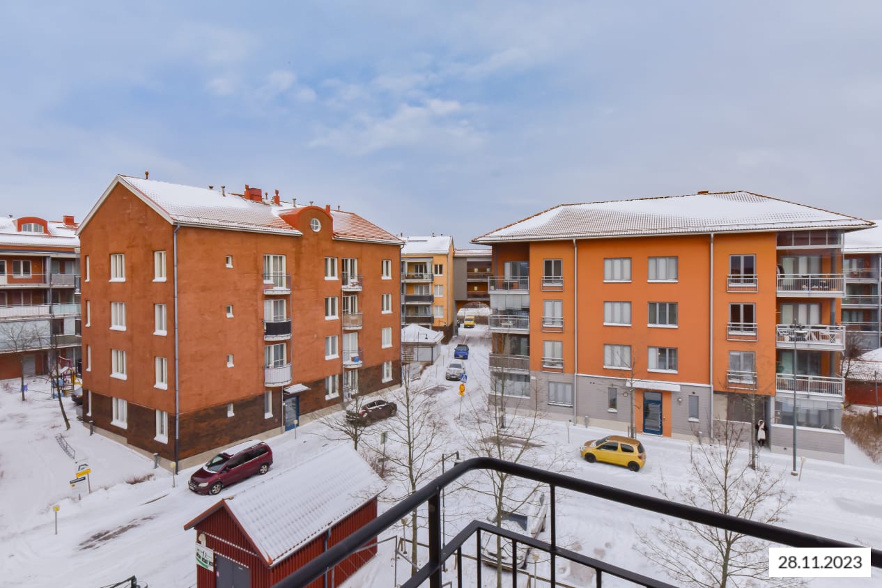 Located in a cheerful and popular neighbourhood within walking distance from the diverse services of Jumbo shopping centre, this pleasant complex consists of three apartment buildings. All apartments have a recessed, glassed-in balcony or a more traditional balcony with metal railings. Floors are mainly done in pale-coloured vinyl, and bathroom walls are tiled. There is a fridge-freezer and space for a dishwasher and microwave in the kitchen areas. The two-bedroom homes also have space for another fridge or freezer. There is space for a washing machine in the bathrooms.