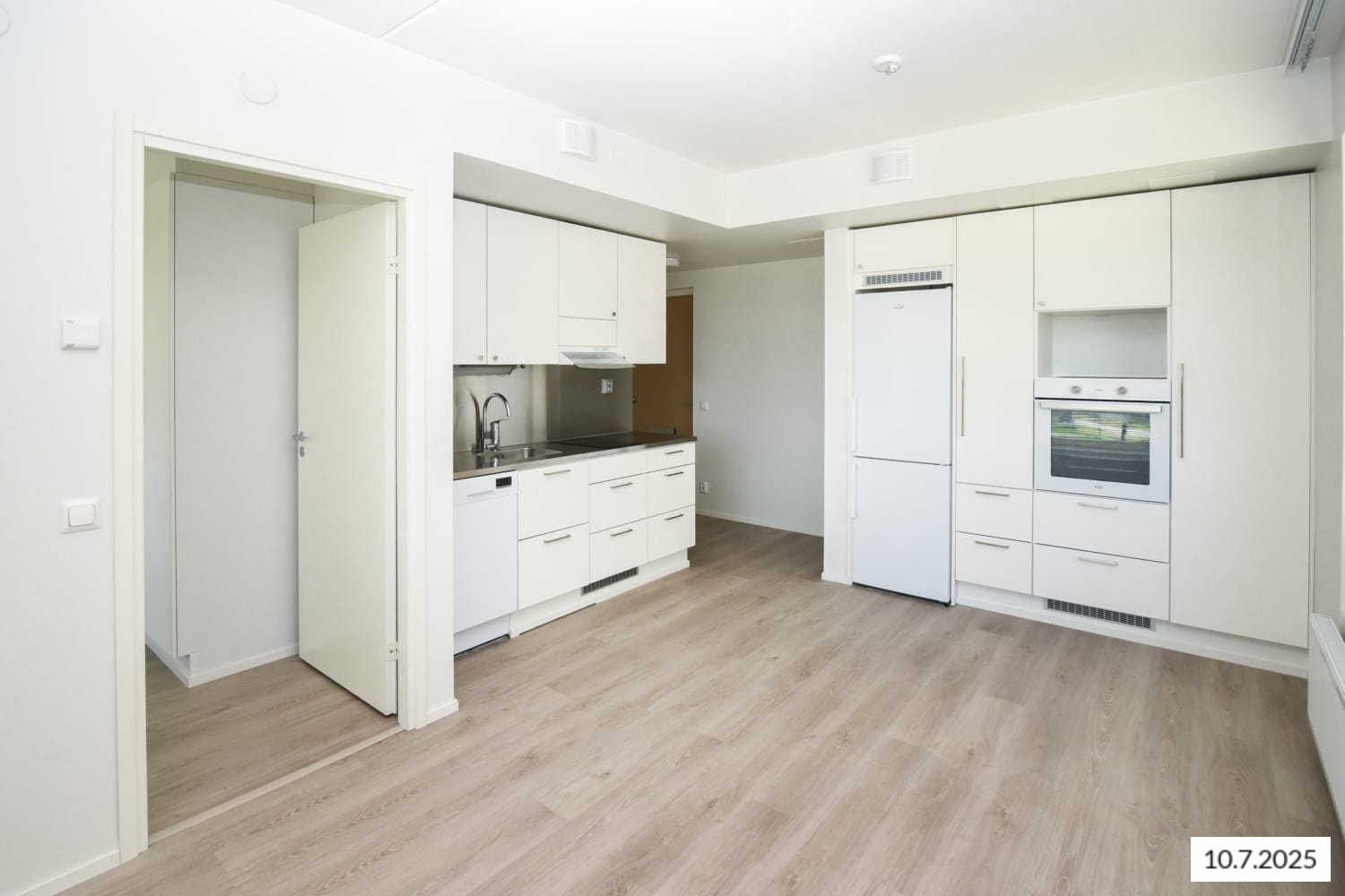 This one-bedroom home has a smart layout where everything has its place. The kitchen is combined seamlessly with the light-filled living room with windows facing two different directions. The glassed-in balcony has a view of Lincolninaukio square. There is wardrobe space in the entrance hallway and the bedroom. Do you drive and need a designated parking space? Lincolninaukio has plenty of different parking options for both traditional and electric cars. All parking lots have the possibility to charge an electric car.