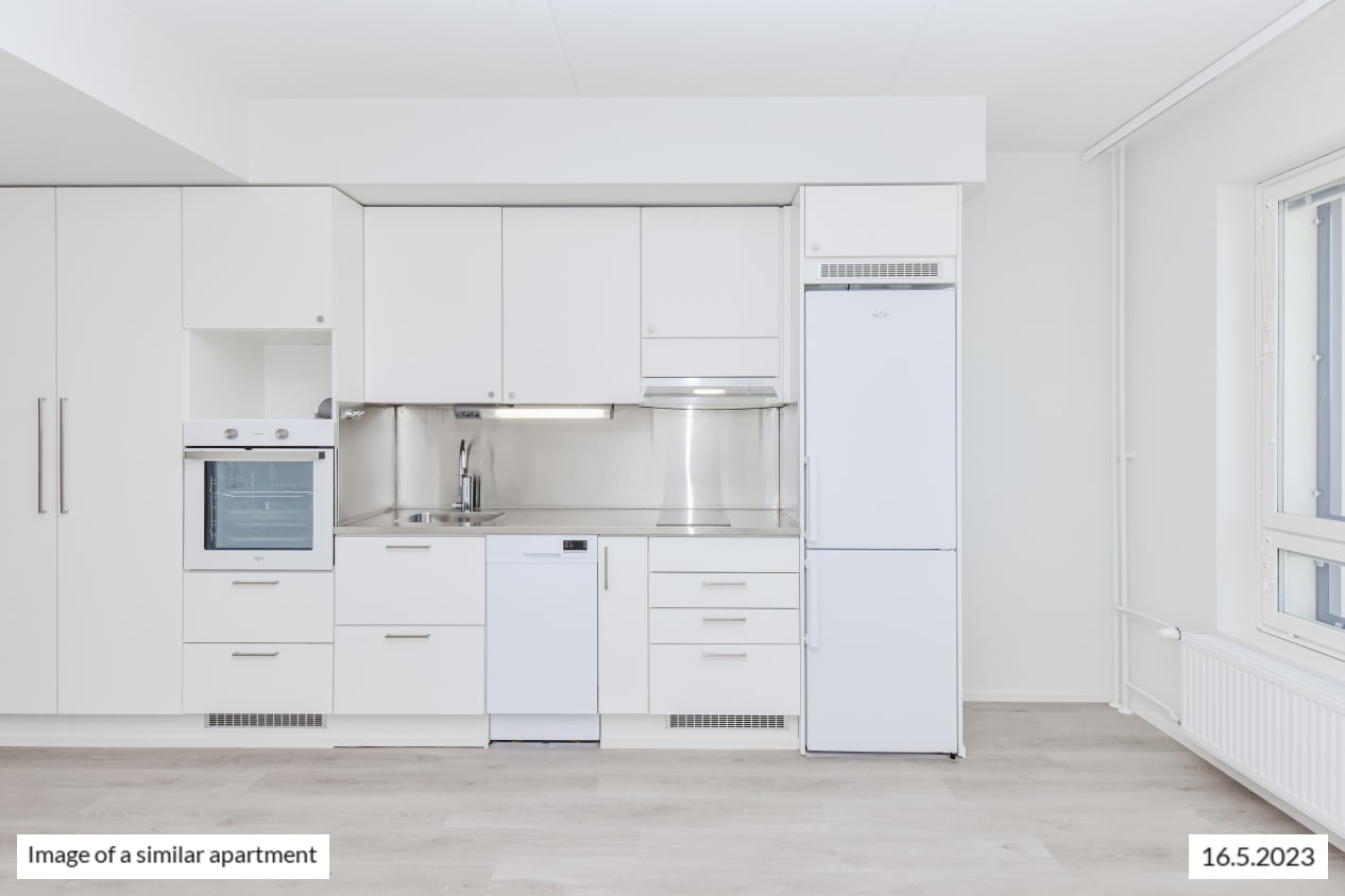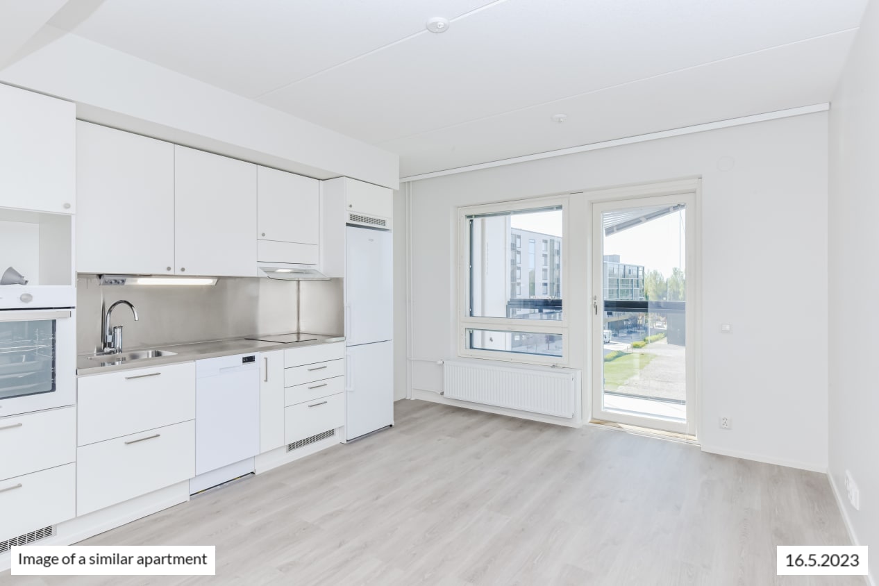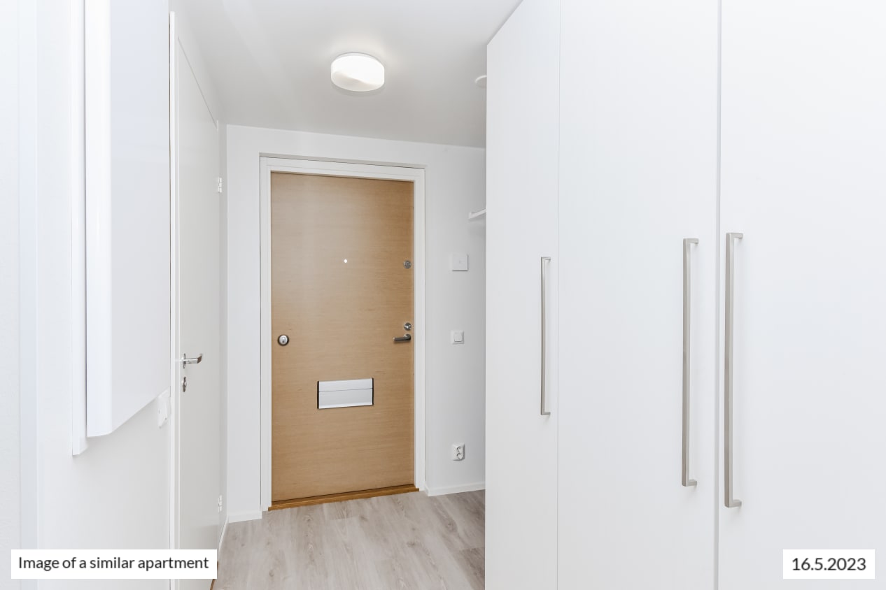 The pale-toned kitchen of this functional studio home is combined seamlessly with the living room that is easy to furnish in many ways thanks to the smart layout. In the summer, the living area extends to the open balcony. There is storage space in the entrance hallway as well as in the wall cabinet of the alcove. This characterful little home offers views of Keimolankaarre street. Do you drive and need a designated parking space? Lincolninaukio has plenty of different parking options for both traditional and electric cars. All parking lots have the possibility to charge an electric car.