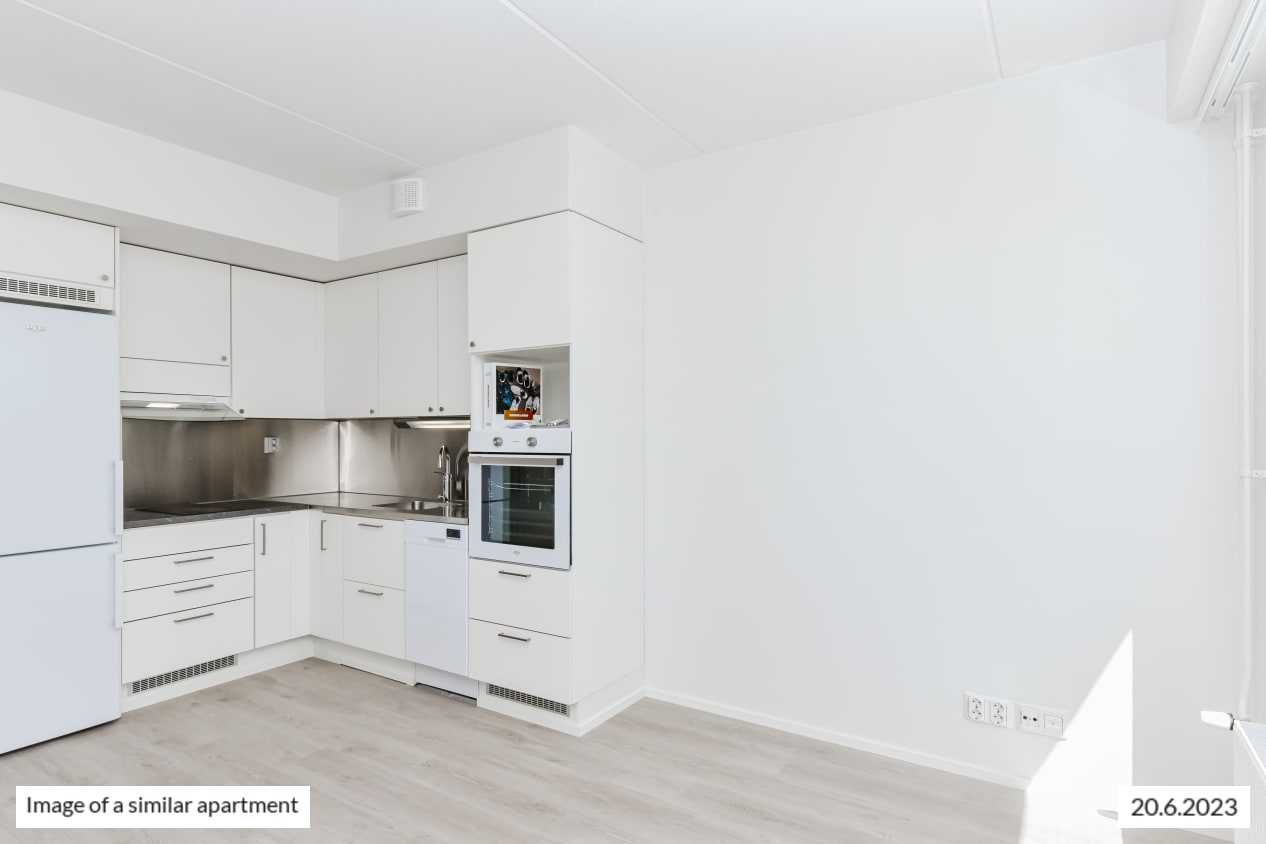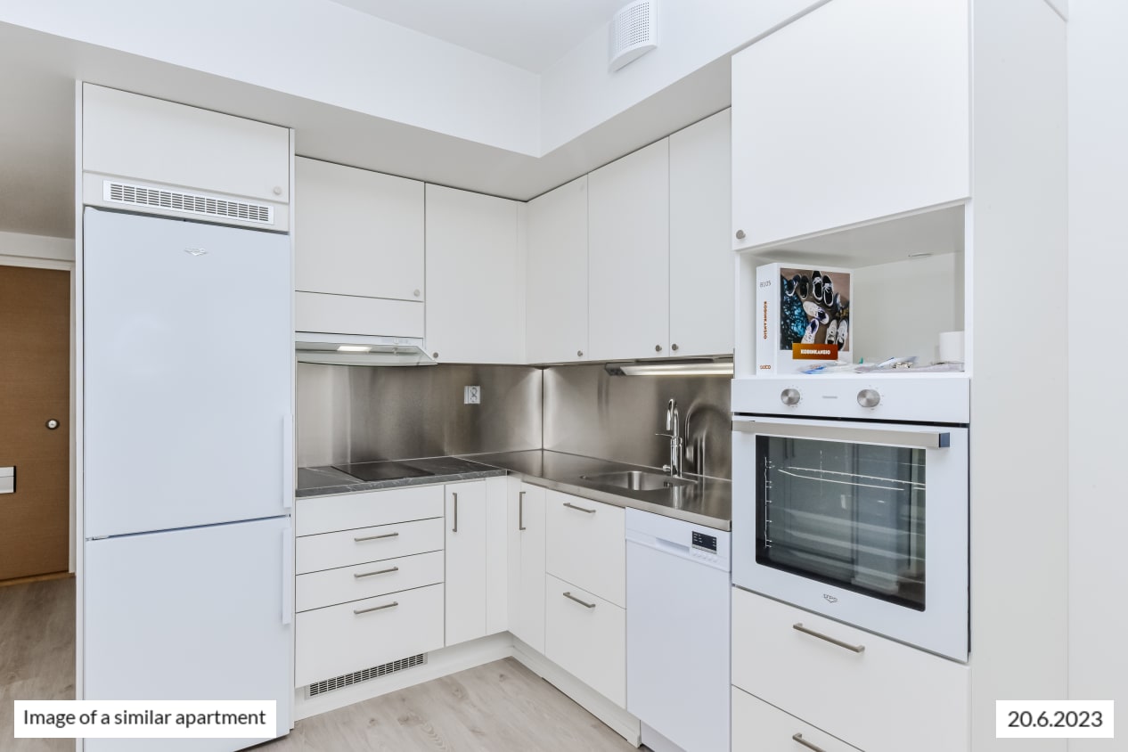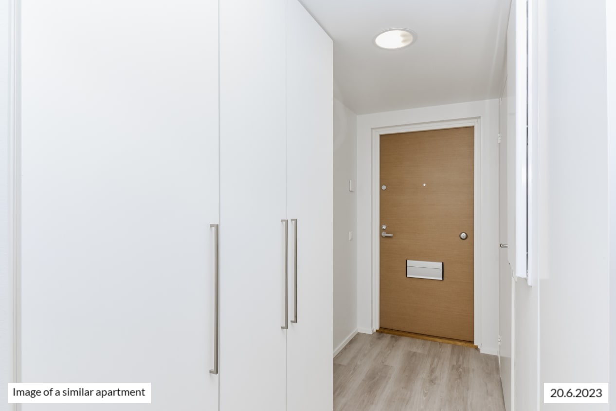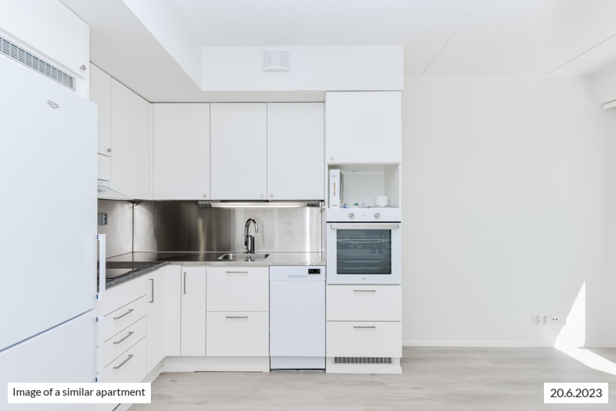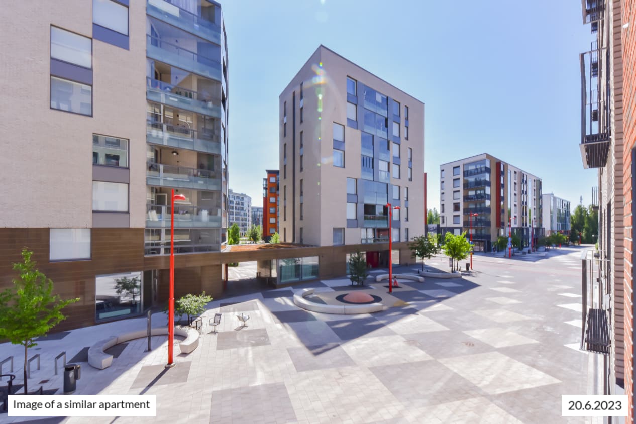 You will love this light-filled one-bedroom home with its smart use of space. The functional kitchen is combined seamlessly with the light-filled living room. For added everyday convenience, there is a good-sized walk-in closet, with more storage space found in the entrance hallway. In the summer, you can, for example, make your own little potted garden on the wide French balcony. The airy one-bedroom home offers views of Lincolninaukio square. Do you drive and need a designated parking space? Lincolninaukio has plenty of different parking options for both traditional and electric cars. All parking lots have the possibility to charge an electric car.