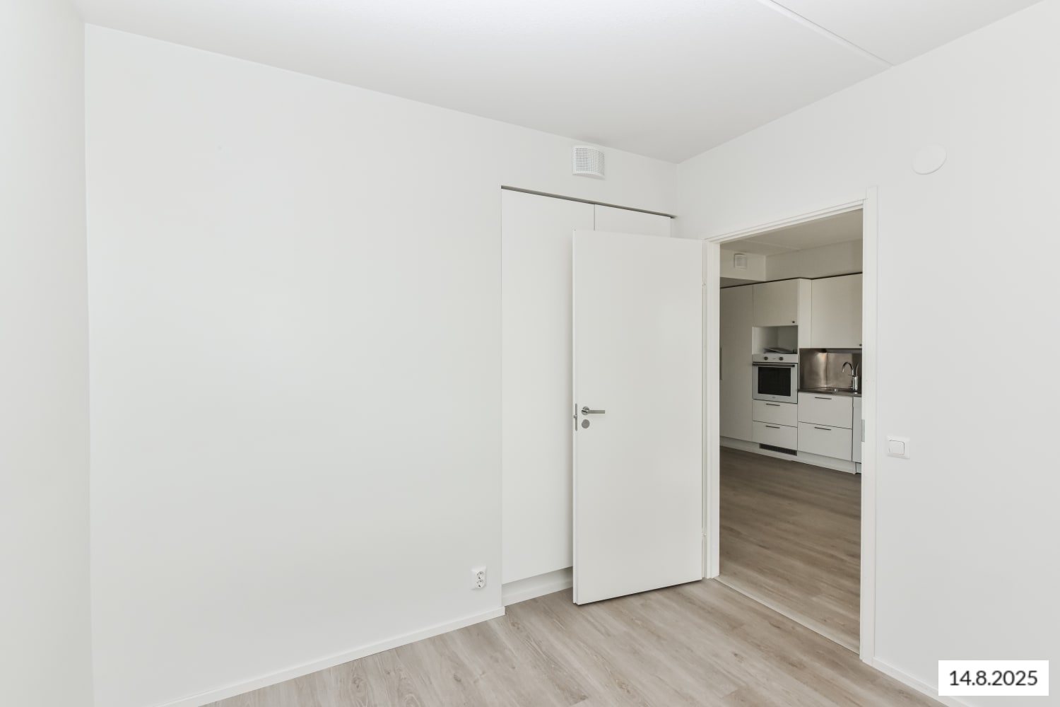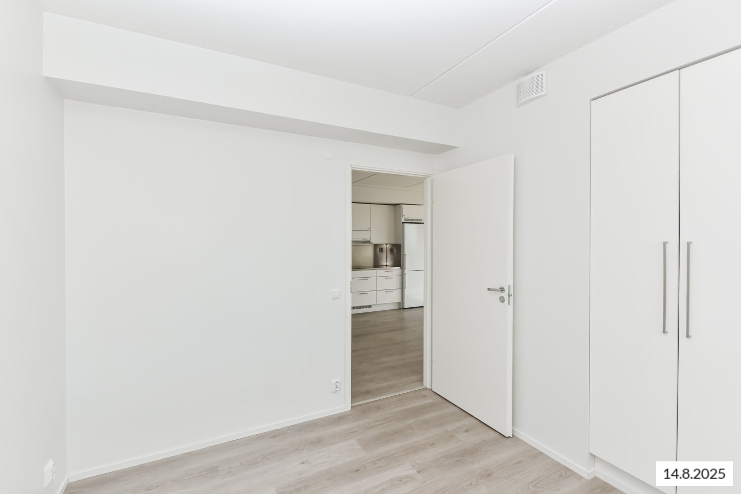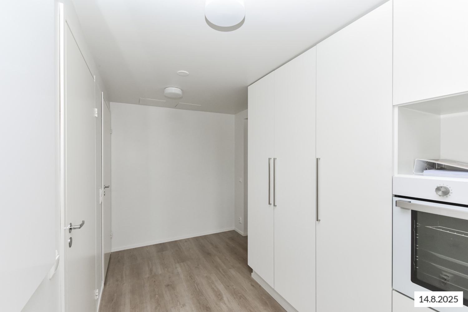 The timeless surface materials of this home provide a neutral backdrop for your personal decor style. The floors are done in pale oak-effect laminate and the walls are painted in a pale shade. The windows are fitted with white Venetian blinds. The classy kitchen has white cabinets with metal-toned pulls. The backsplash is in pale laminate or stainless steel and the countertops are in grey laminate or stainless steel. The fully equipped kitchen has an induction cooktop, built-in oven, cooker hood, dishwasher and fridge-freezer. There is also space for a microwave. This kitchen is a joy to cook in!