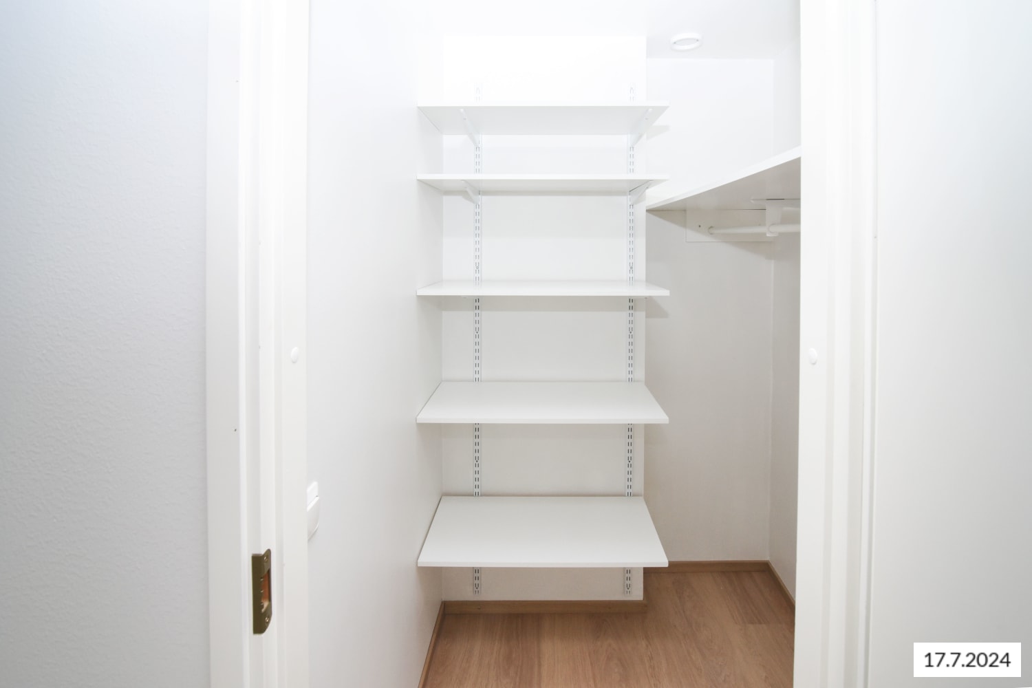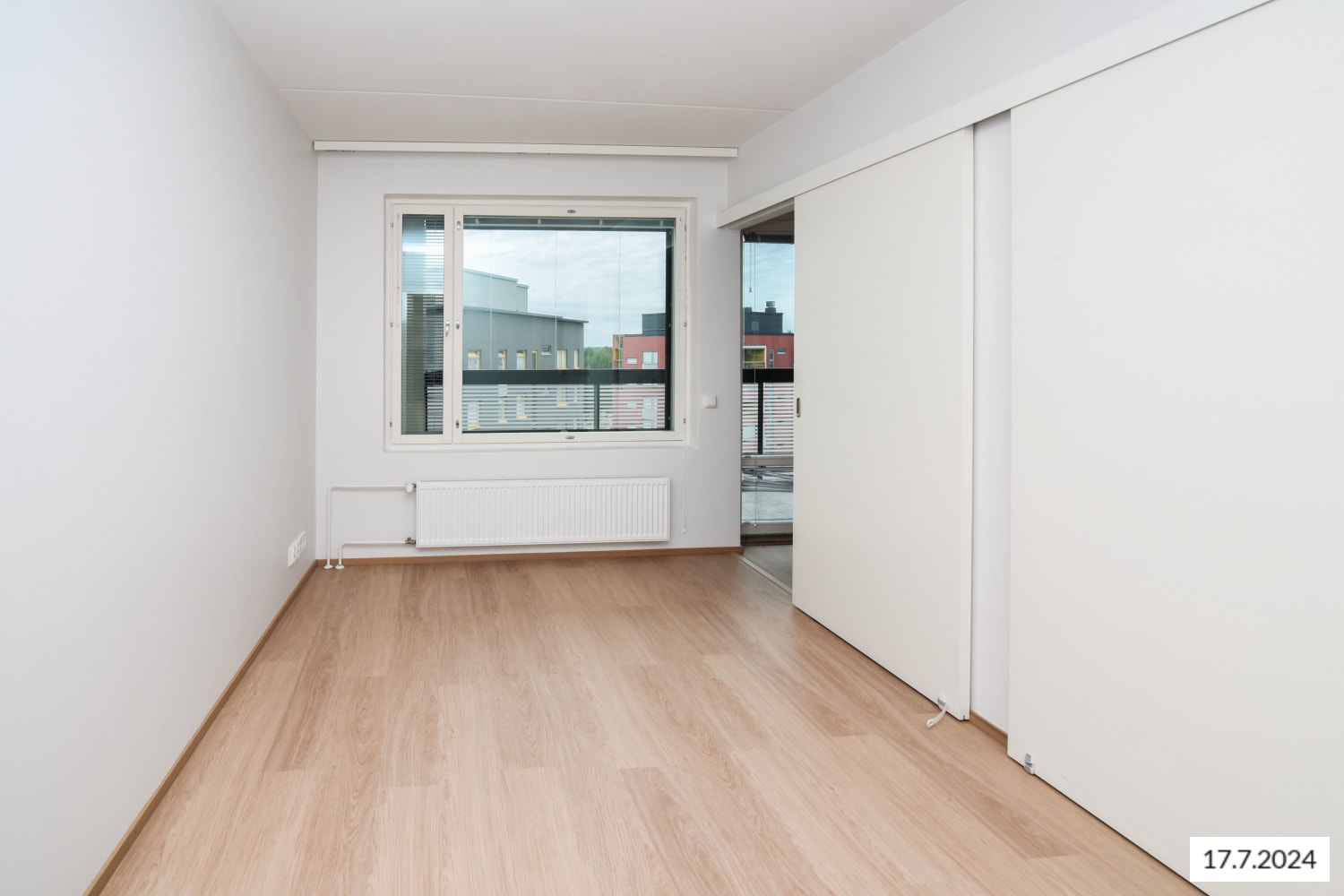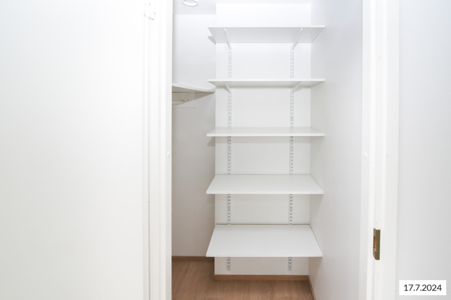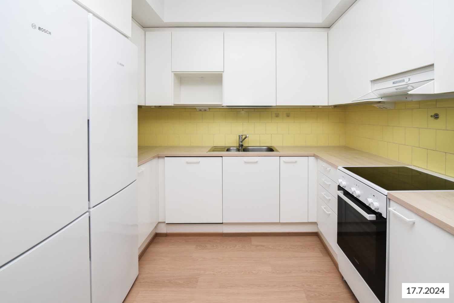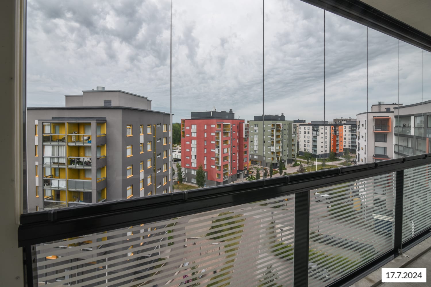 The kitchen and living room of this through-apartment create a spacious living area that is easy to decorate to your liking. Both bedrooms have ample storage space in separate walk-in closets. Your own sauna offers a relaxing retreat at the end of the day. The glazed balcony opens to the west, overlooking the park-like courtyard.