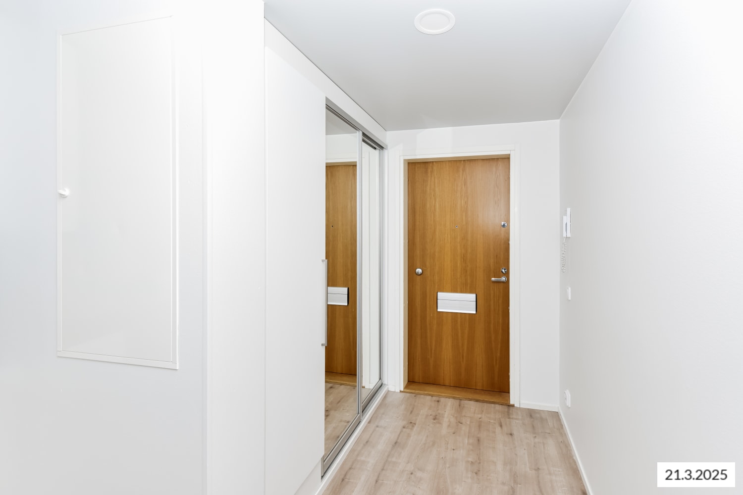 The heart of this beautiful home is the cosy living area formed by the open kitchen and living room, where the whole family can spend time together. In the hallway, in addition to a mirrored cabinet, there is a separate storage space, perfect for hobby equipment. There is ample storage in the built-in wardrobes in the bedrooms as well. You can decorate the glazed balcony as your own summer room.