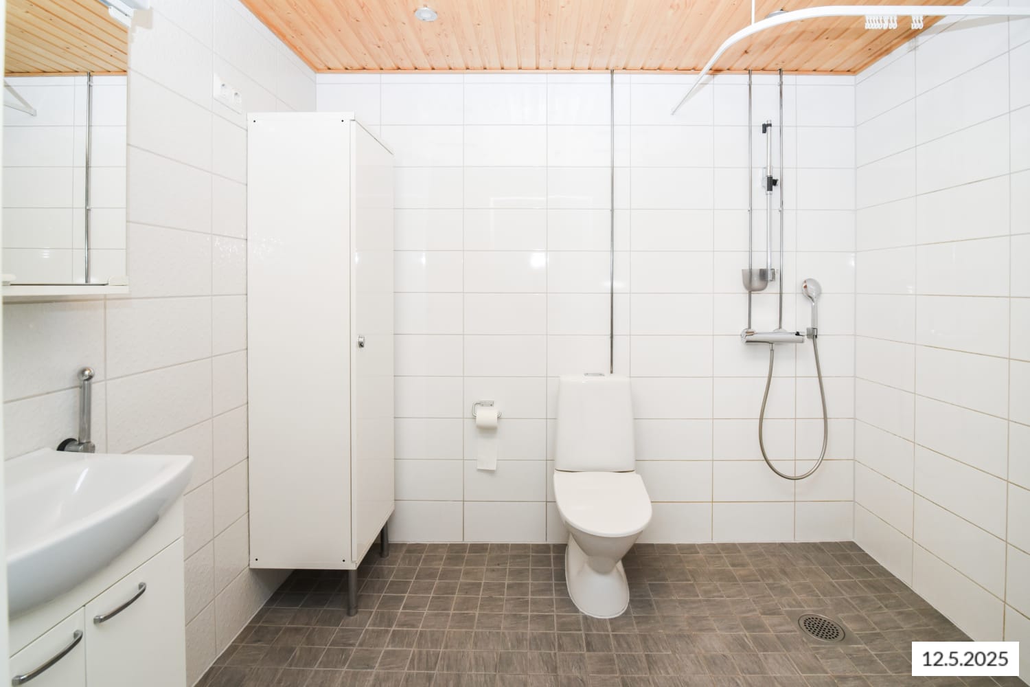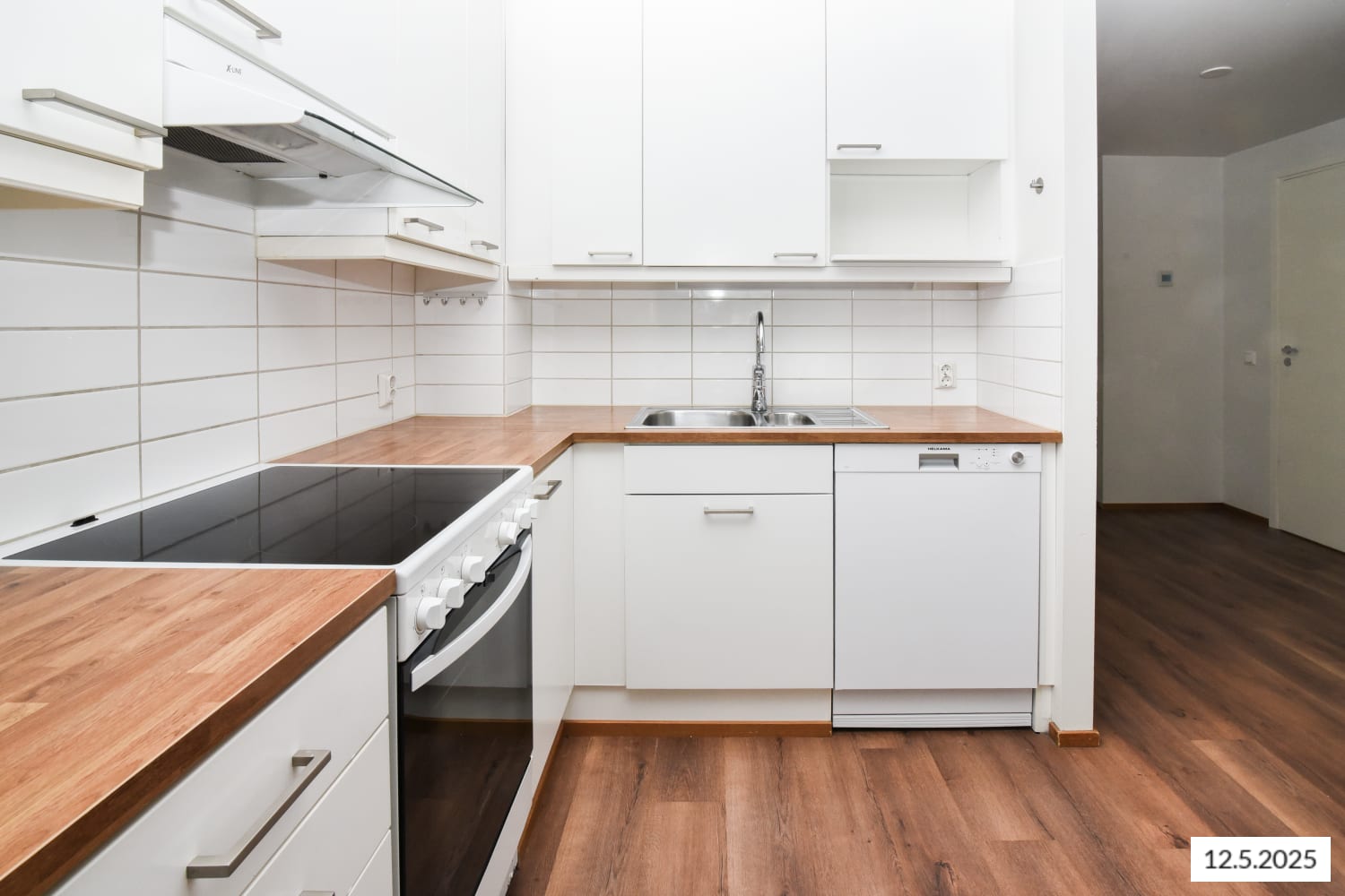 This modern wooden apartment building with a warm feel was built for the 2015 Housing Fair. The apartment surface materials are classy and the colour scheme light. The non-wet room floors are laid in easy-care laminate. Kitchen unit doors and appliances are fresh white in colour, and the worktops are in wood-effect laminate. The spacious bathrooms are tiled and have space and hookups for a washing machine. All apartments have a glassed-in balcony.