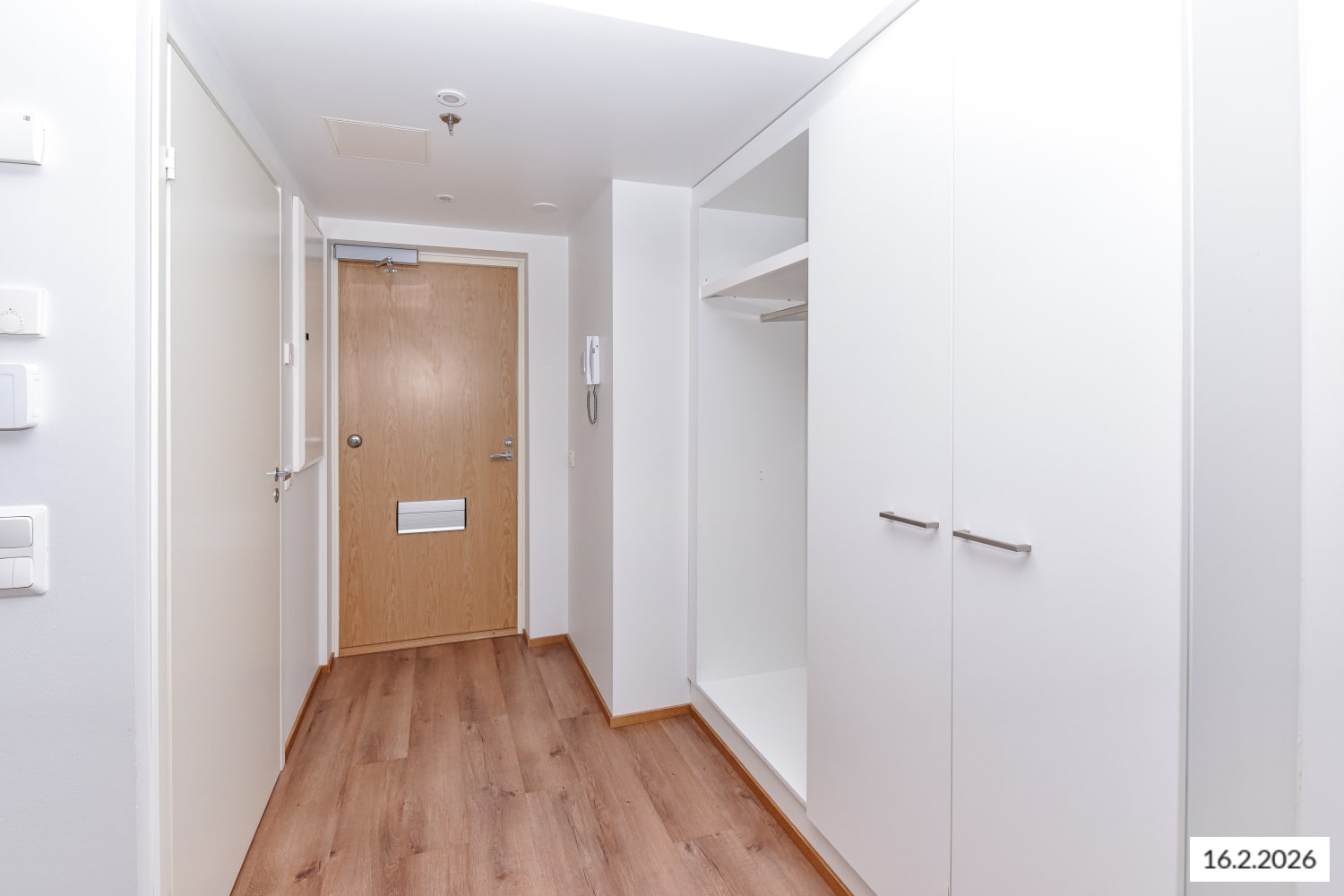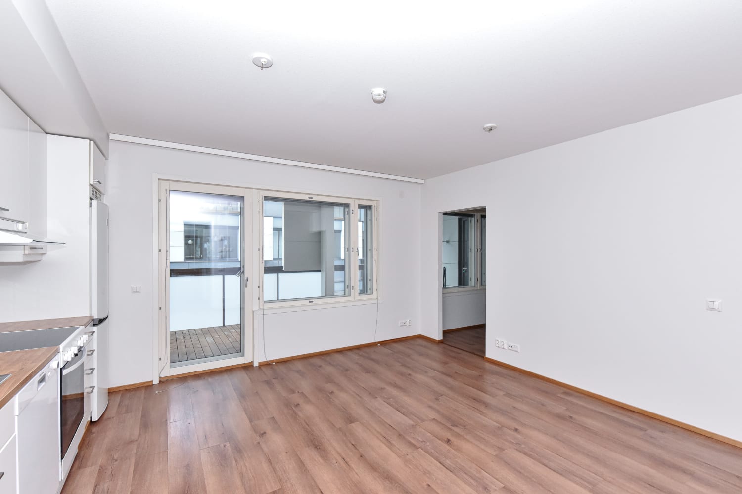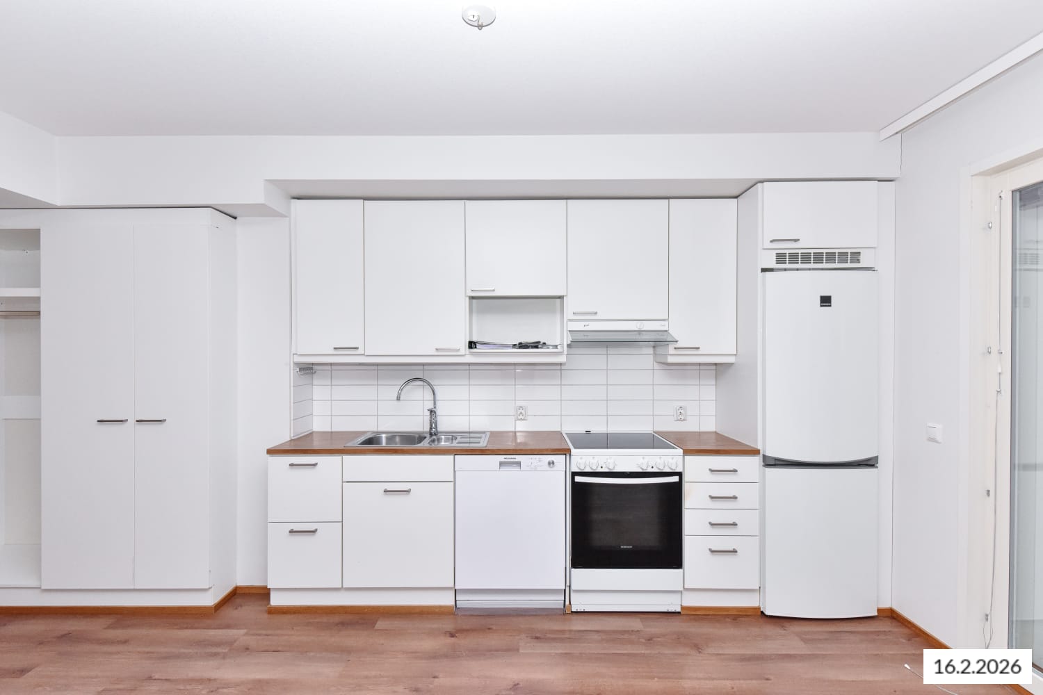 This modern wooden apartment building with a warm feel was built for the 2015 Housing Fair. The apartment surface materials are classy and the colour scheme light. The non-wet room floors are laid in easy-care laminate. Kitchen unit doors and appliances are fresh white in colour, and the worktops are in wood-effect laminate. The spacious bathrooms are tiled and have space and hookups for a washing machine. All apartments have a glassed-in balcony.