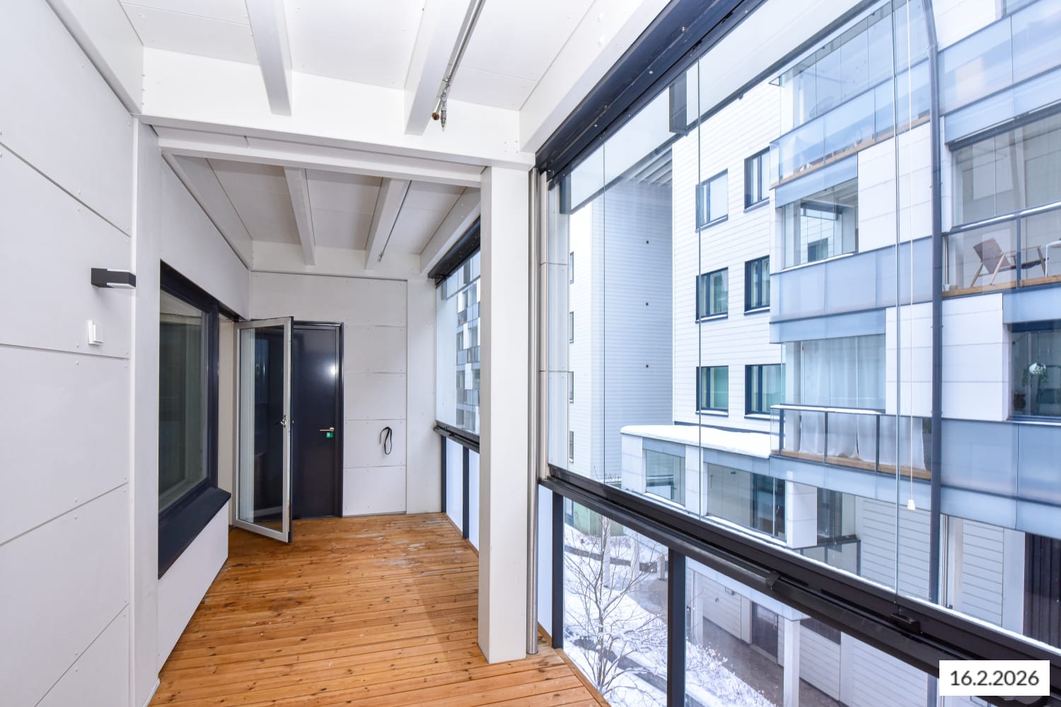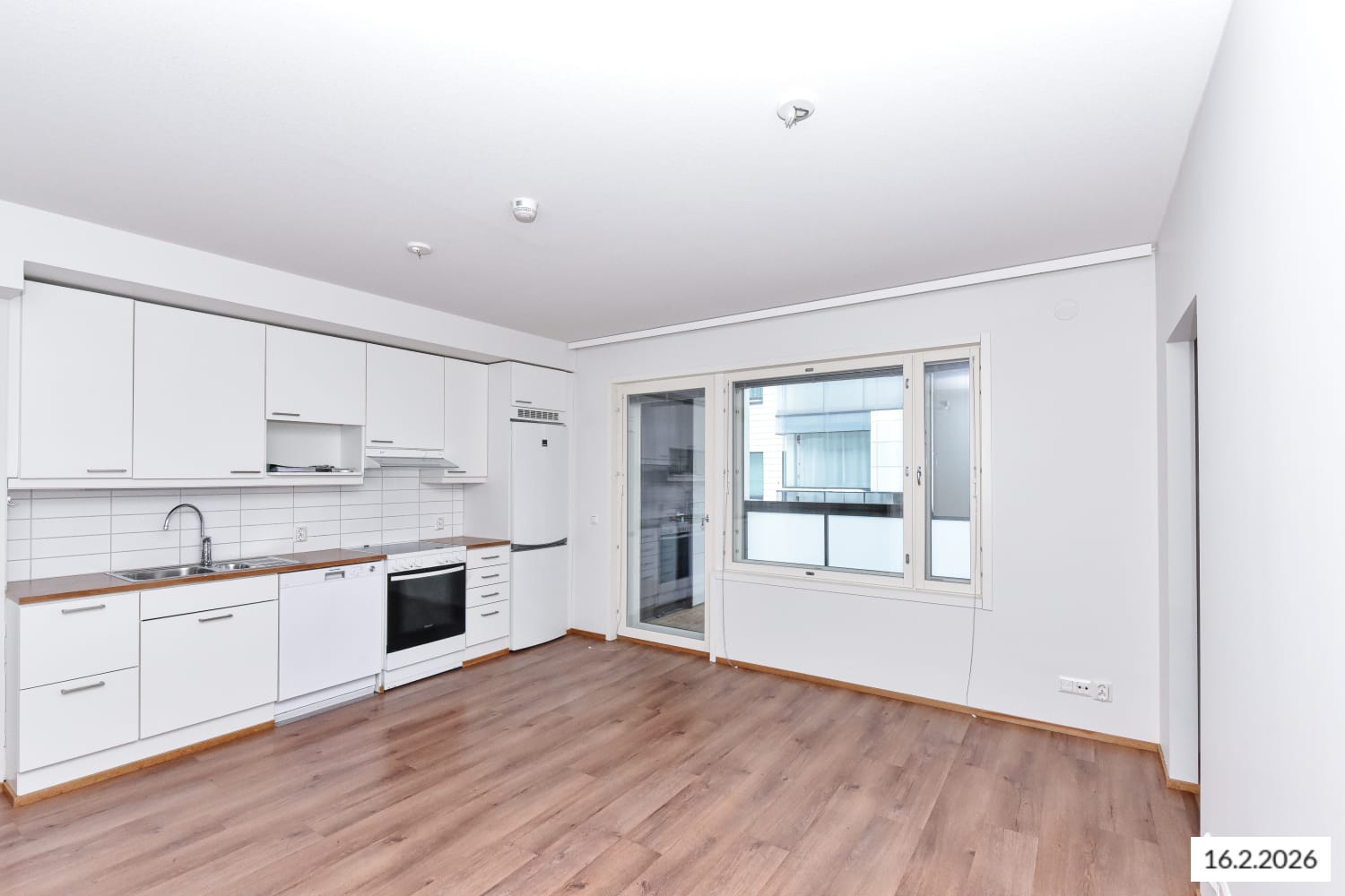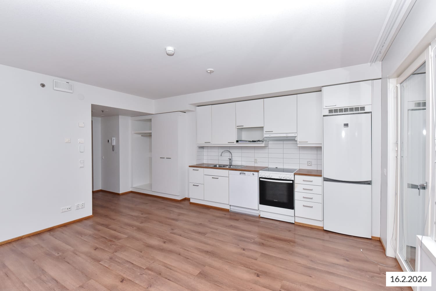 This modern wooden apartment building with a warm feel was built for the 2015 Housing Fair. The apartment surface materials are classy and the colour scheme light. The non-wet room floors are laid in easy-care laminate. Kitchen unit doors and appliances are fresh white in colour, and the worktops are in wood-effect laminate. The spacious bathrooms are tiled and have space and hookups for a washing machine. All apartments have a glassed-in balcony.