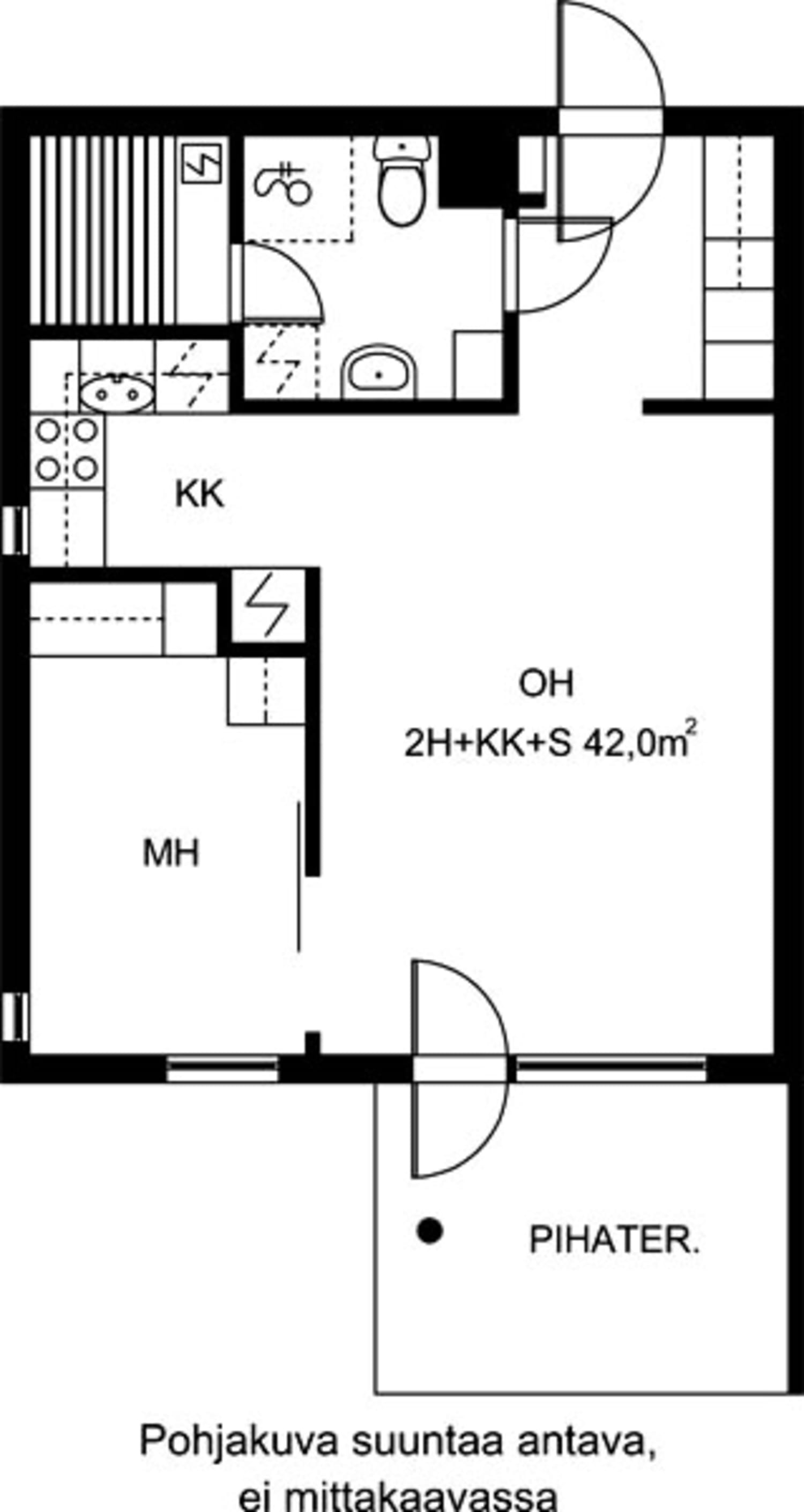 Located in a neighbourhood of mostly houses and low-rise buildings, all homes in this property built in 2002 have a balcony or ground-level terrace and a sauna with a window. All except for the one-bedrooms with a kitchenette have a fridge-freezer as well as space for another fridge or freezer. All apartments have hookups for a dishwasher, microwave and stackable washer/dryer. The four buildings of this complex form sheltered and pleasant grounds with a well-maintained play/sitting area in the middle.