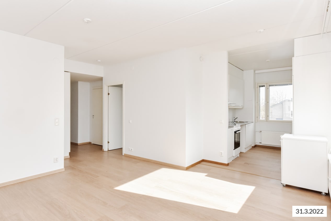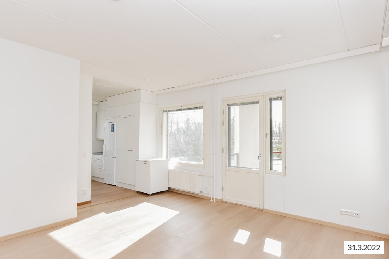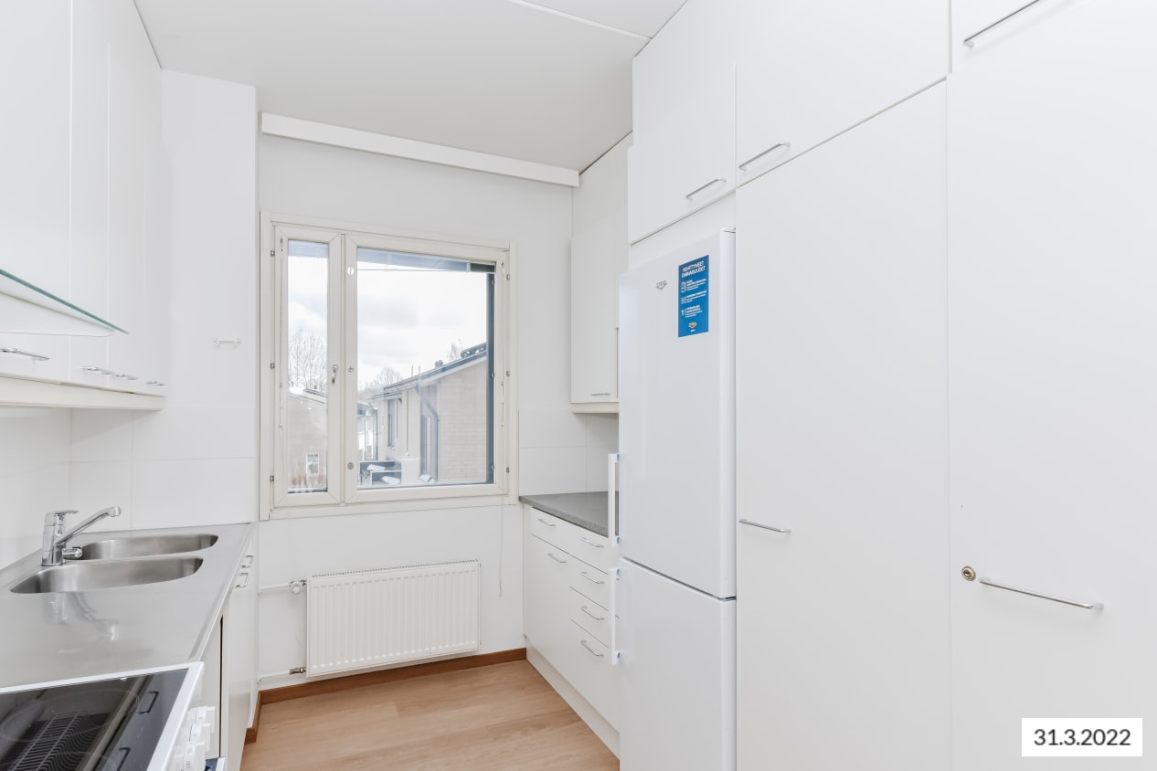 Located in a neighbourhood of mostly houses and low-rise buildings, all homes in this property built in 2002 have a balcony or ground-level terrace and a sauna with a window. All except for the one-bedrooms with a kitchenette have a fridge-freezer as well as space for another fridge or freezer. All apartments have hookups for a dishwasher, microwave and stackable washer/dryer. The four buildings of this complex form sheltered and pleasant grounds with a well-maintained play/sitting area in the middle.