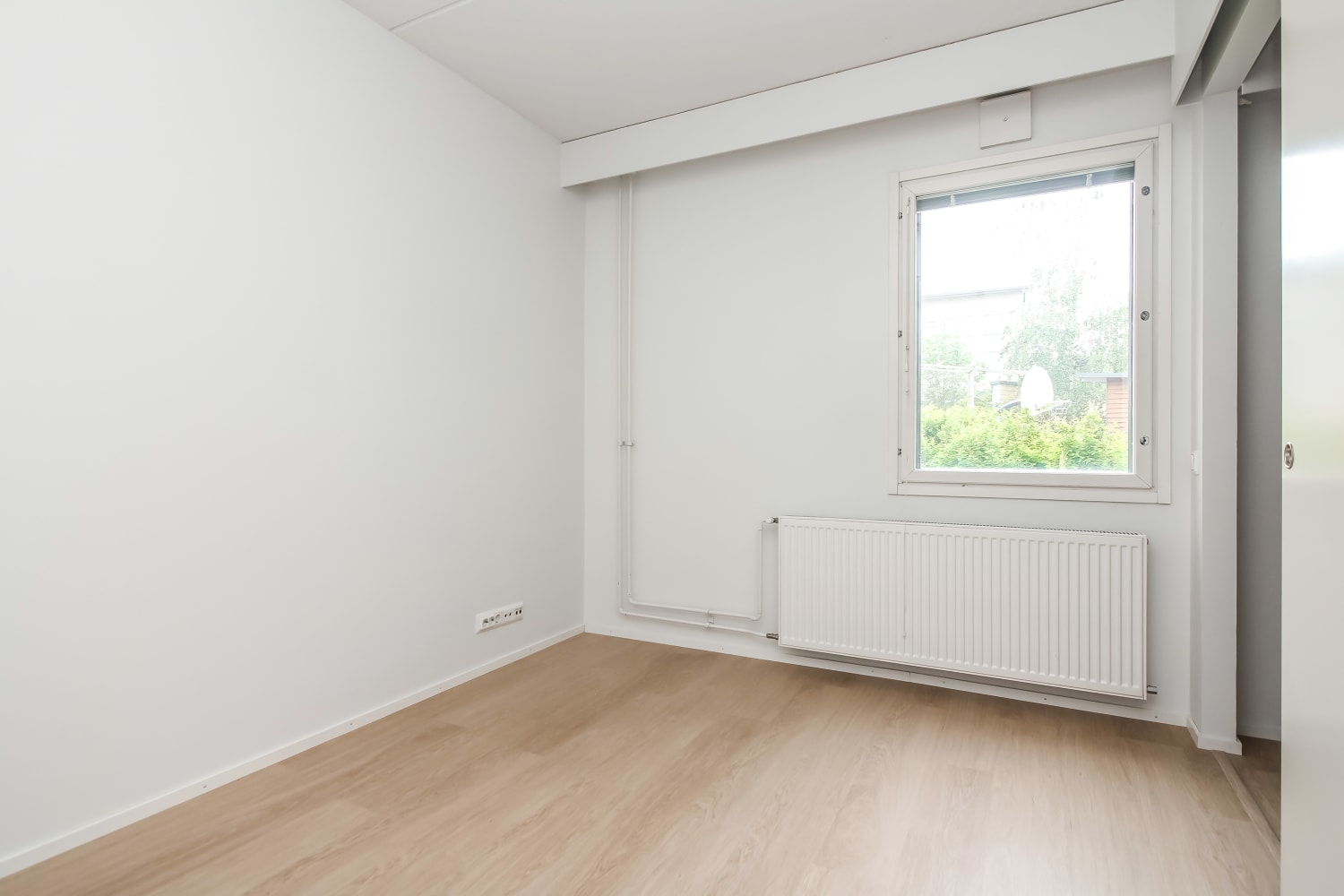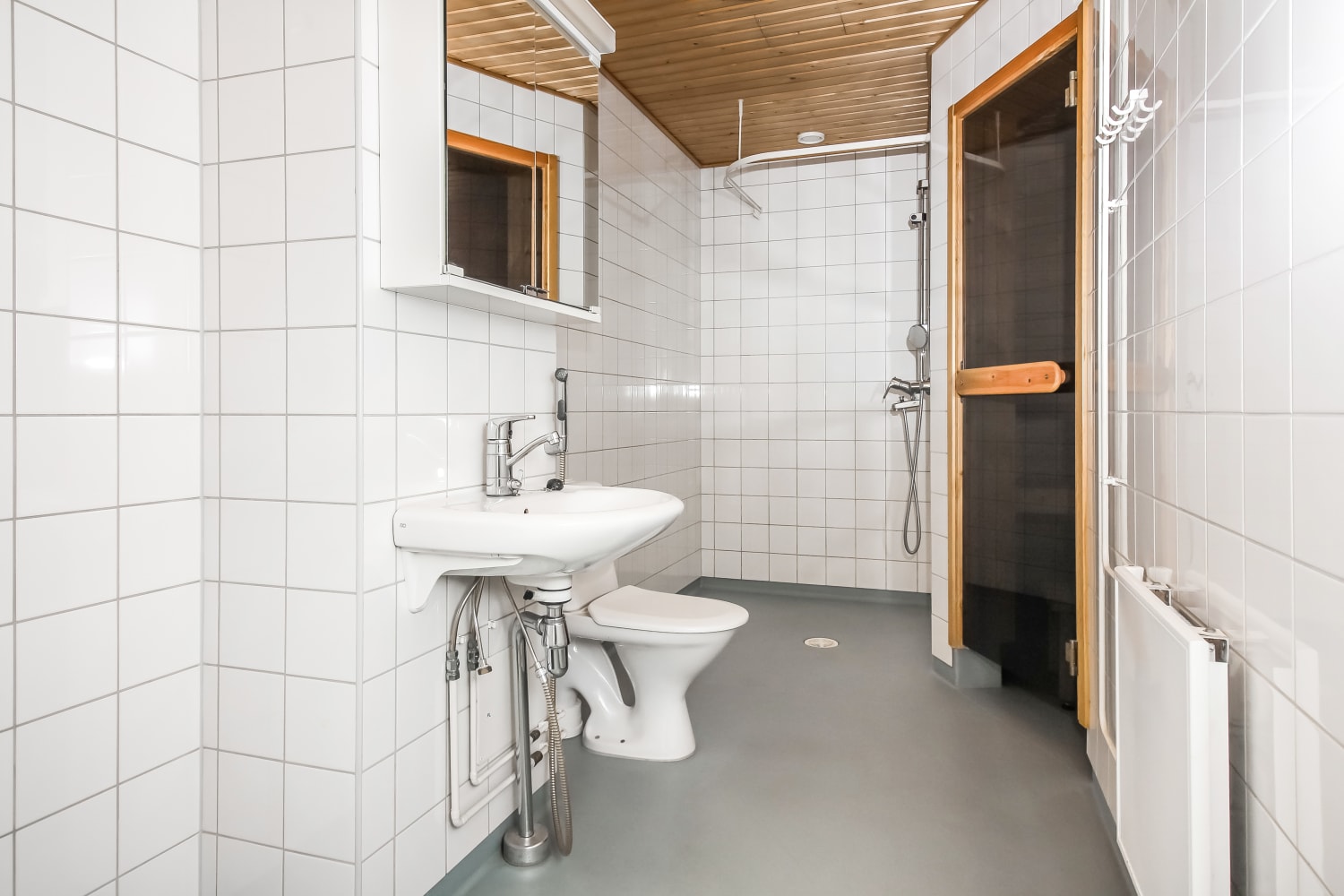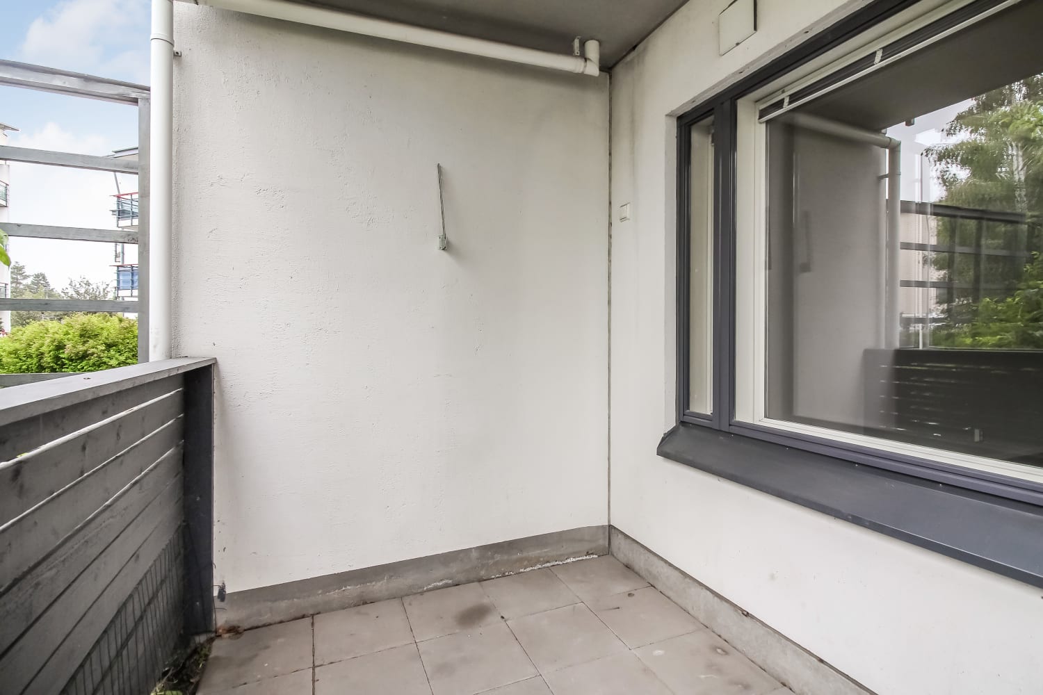 Located in a neighbourhood of mostly houses and low-rise buildings, all homes in this property built in 2002 have a balcony or ground-level terrace and a sauna with a window. All except for the one-bedrooms with a kitchenette have a fridge-freezer as well as space for another fridge or freezer. All apartments have hookups for a dishwasher, microwave and stackable washer/dryer. The four buildings of this complex form sheltered and pleasant grounds with a well-maintained play/sitting area in the middle.