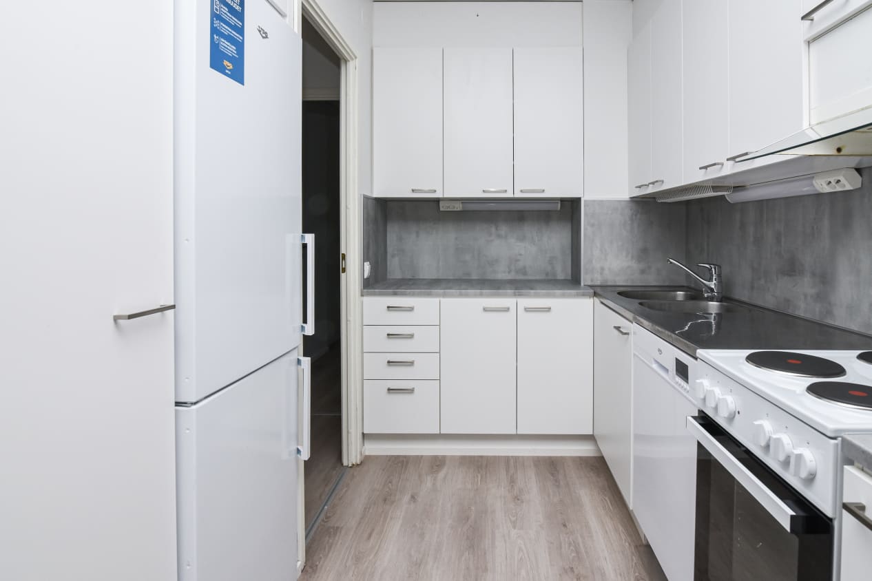 The leafy grounds of this complex of low-rise apartment blocks provide a sheltered area for play, while the Westerkulla Manor grounds can be found behind the property. The homes in these pleasant buildings are one- and two-bedroom apartments. The kitchens have light-coloured units and white worktops, a fridge-freezer, cooker, extractor fan and hookups for a dishwasher. There is space for a washing machine in the bathrooms. All apartments have a private sauna and a balcony or private garden area.