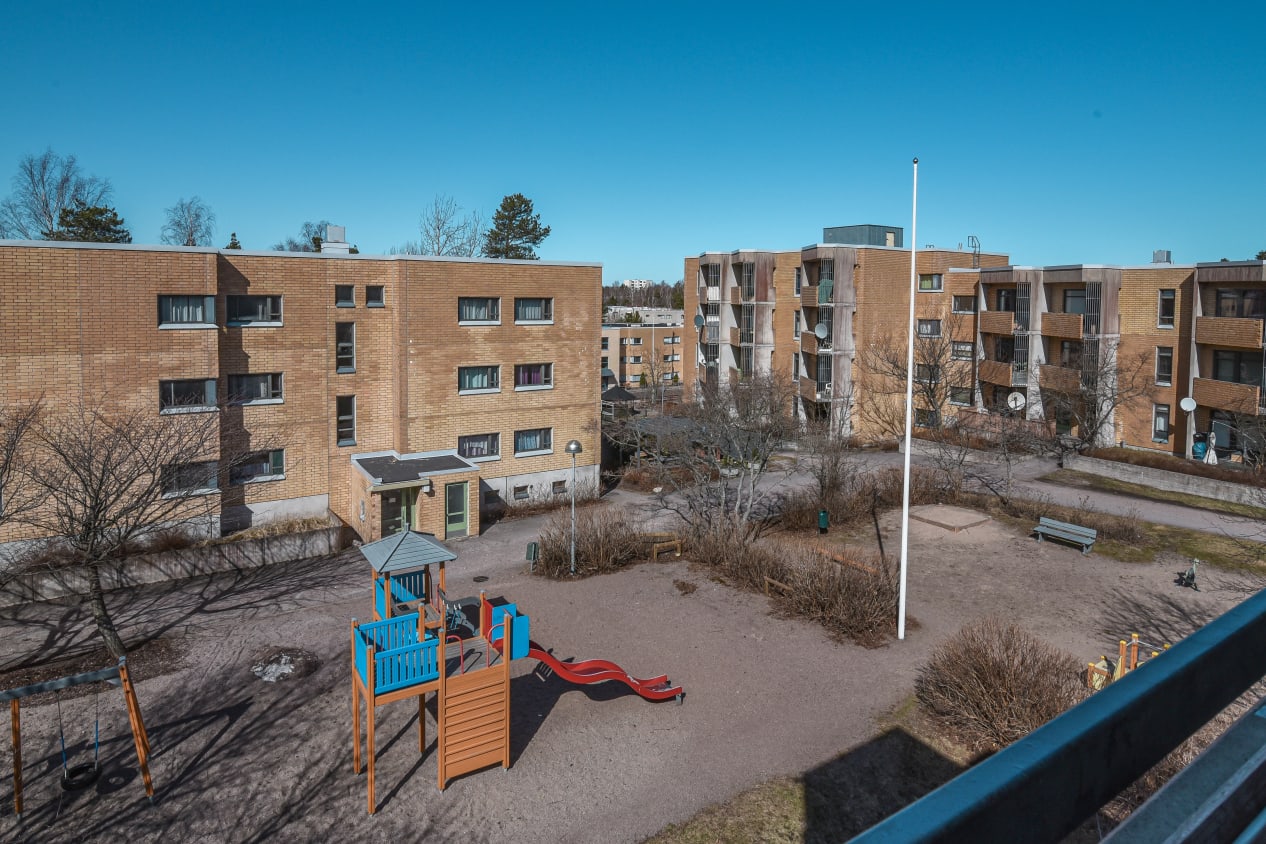 The leafy grounds of this complex of two apartment blocks provide a sheltered area for play, while the Westerkulla Manor grounds can be found on the other side of Tykkikuja street. The apartments in these pale-yellow buildings have clean layouts and are filled with light. The open-plan kitchens form pleasant living areas with the dining and living rooms. All apartments have a balcony.