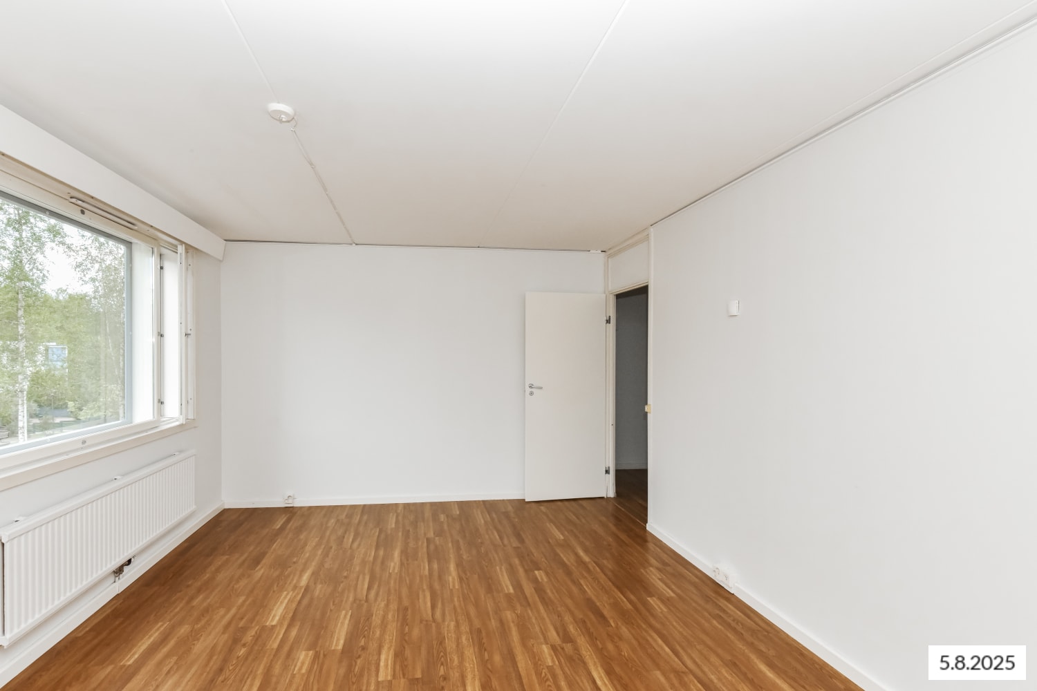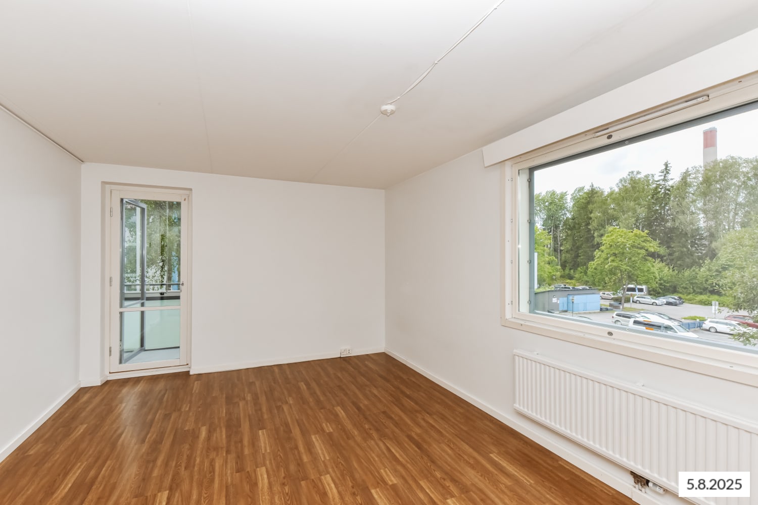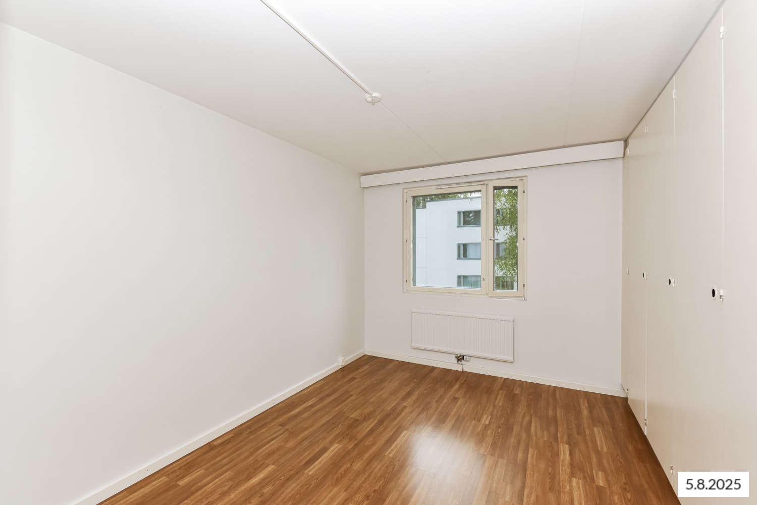 This bright one-bedroom apartment delights with its sunny west-facing glazed balcony and a clear, easily furnishable floor plan. The apartment offers built-in storage in the bedroom with tall cabinets.