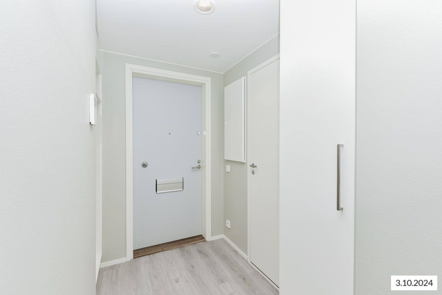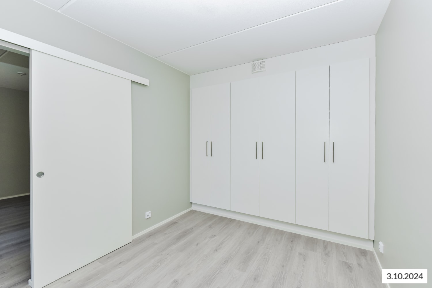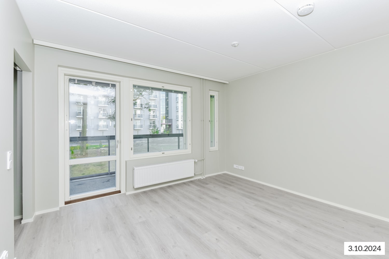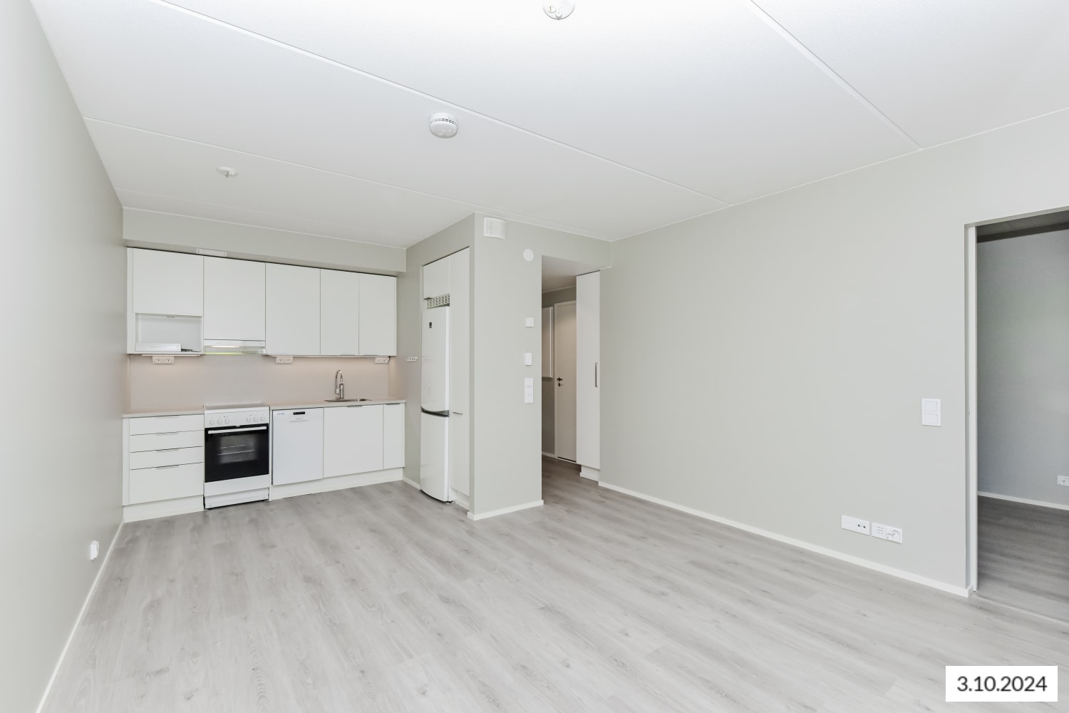 The light surfaces of this cosy one-bedroom home suit many interior styles. The living room is complemented by an open kitchen, with enough space for a dining table. The bedroom is separated from the living room by a space-saving sliding door. You can create your own summer paradise on the glazed balcony. The home's floors are oak laminate, and the walls are painted light grey. The hallway and bedroom wardrobes are white, and the windows have venetian blinds.