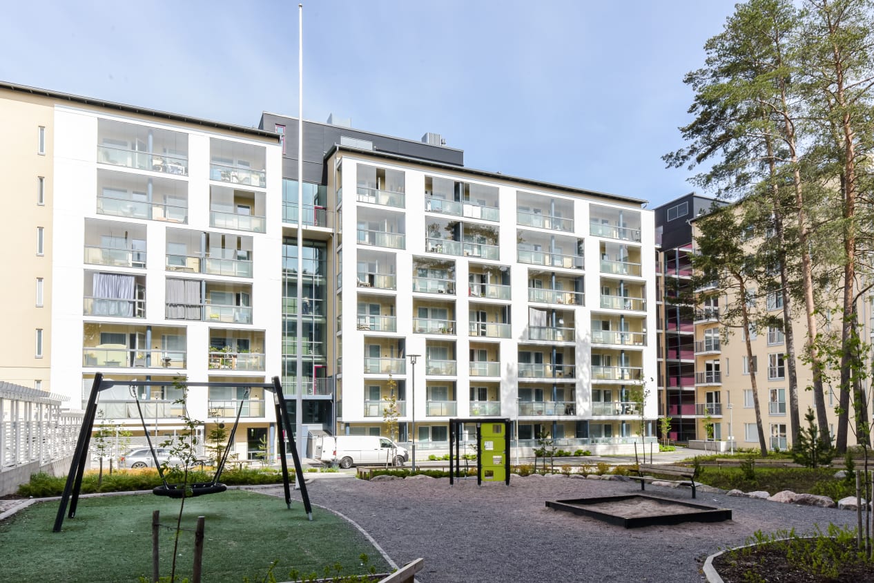 An area enjoying a new revival, Martinlaakso offers an excellent environment for those who want to live in a modern rental home but appreciate the excellent services and good connections offered by a well-established residential area. Raiviosuonmäki 9 forms a leafy park-like complex with the neighbouring building. The apartments are easy to furnish and accessible despite being very compact. Residential comfort in this new building is also further increased by modern communal areas: the laundry room with drying cabinets, baby transport and outdoor equipment storage and sauna sections are located on the ground floor. In addition, the laundry room, drying room, clubroom and sauna section with four saunas and a terrace for cooling down of Raiviosuonmäki 7 can be used by residents of both buildings. Car parking spaces are located on the northern side of the grounds.