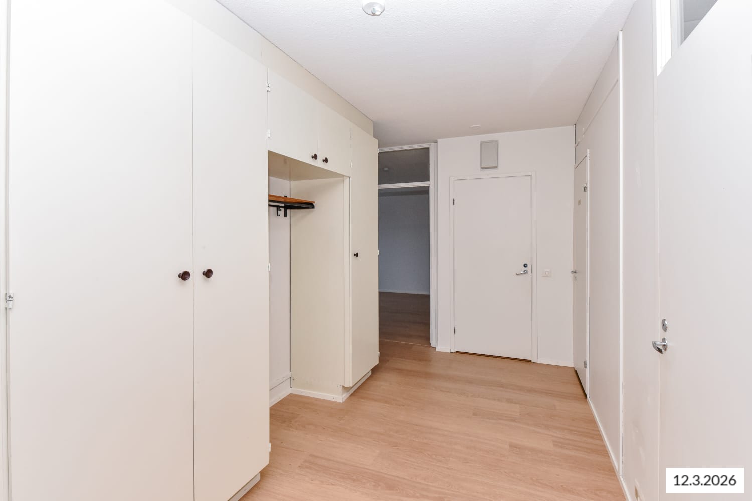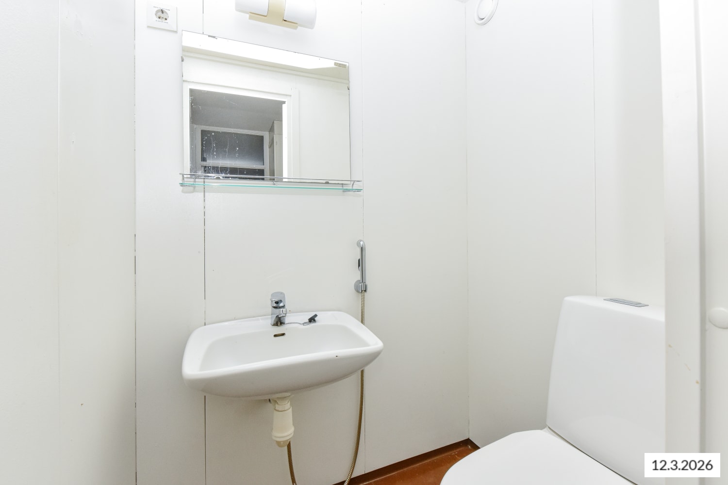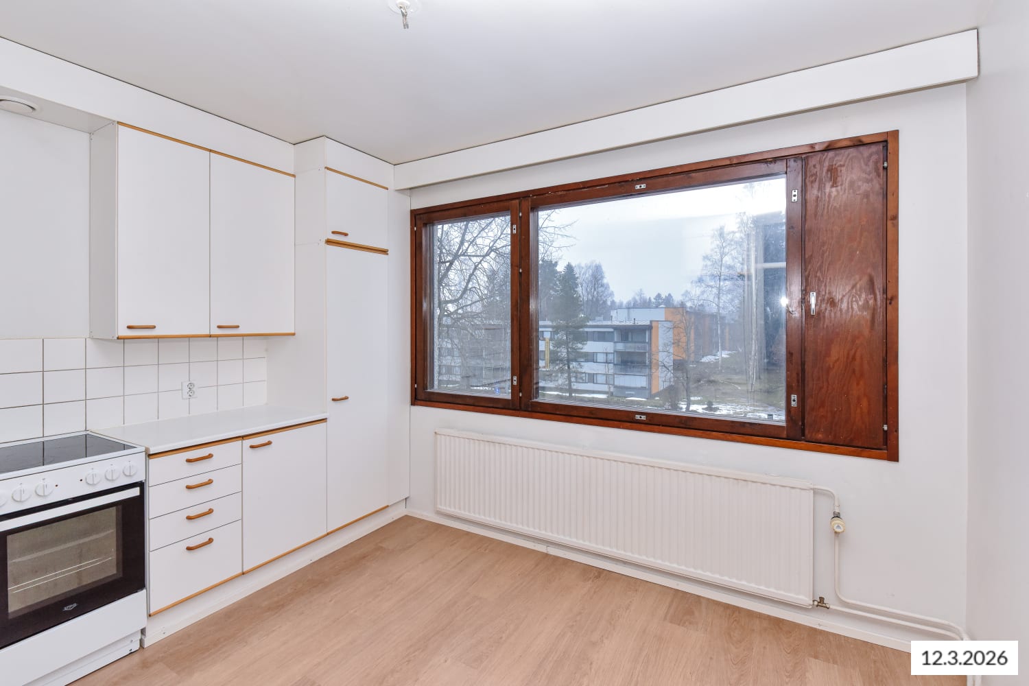 The separate kitchen has ample space for a dining table and offers plenty of working space, with the dining table fitting cozily by the window. The bathroom has room for a washing machine. A small WC makes everyday life smoother.