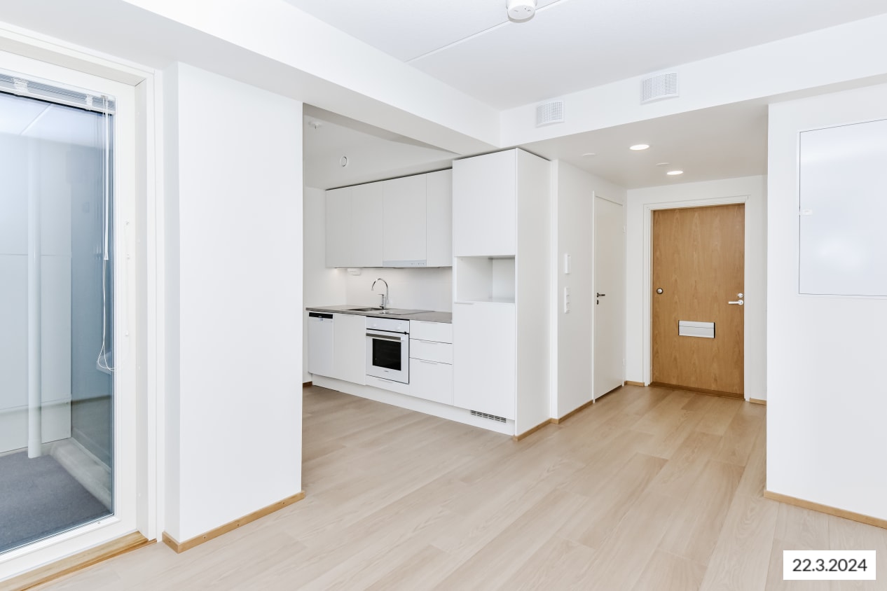 Myyrin Tähti at Ruukkutori 1 consists of one residential high-rise building, which is 12-storeys tall and has one staircase. The building's facades are vibrant: one can sense the interplay of colors, light, and shadows. There are 64 apartments, of which SATO owns five studio apartments and two one-bedroom apartments. Two sauna departments offer comfortable settings for relaxation. You can invite friends and relatives to the clubroom for celebrations, game nights, or even delicious cooking sessions. The laundry room has ample space for taking care of laundry, and two separate drying rooms make laundry drying efficient. Apartment-specific storage units are located in the basement shelter, a separate storage area, or in a storage area on the 1st floor. The stroller storage is in the basement. Outdoor equipment storage rooms are in the basement and on the 1st floor. The laundry and drying rooms are in the basement. The saunas with changing rooms and the company's clubroom are on the 2nd floor. Both cold and hot water consumption is measured per apartment. Apartment-specific ventilation provides comfort in all homes, as does the modern equipment of Finnish Puustelli kitchens. The floors in the homes are laminate, and the walls are painted light. The heating is connected to district heating with water radiator heating. The bathroom has underfloor heating powered by apartment-specific electricity. Windows have venetian blinds. Balconies are glazed, with mainly openable glazing. There is an electrical outlet and a wall light on the balcony. In the kitchen, there is ceramic tile between the kitchen cabinets. The kitchen is equipped with an extractor hood, a ceramic hob, a convection oven, a dishwasher, a provision for a microwave, and a fridge with a freezer compartment. The bathroom is tiled, and there are provisions and connections for a washing machine and a dryer. The main doors of residential buildings are equipped with a door intercom.