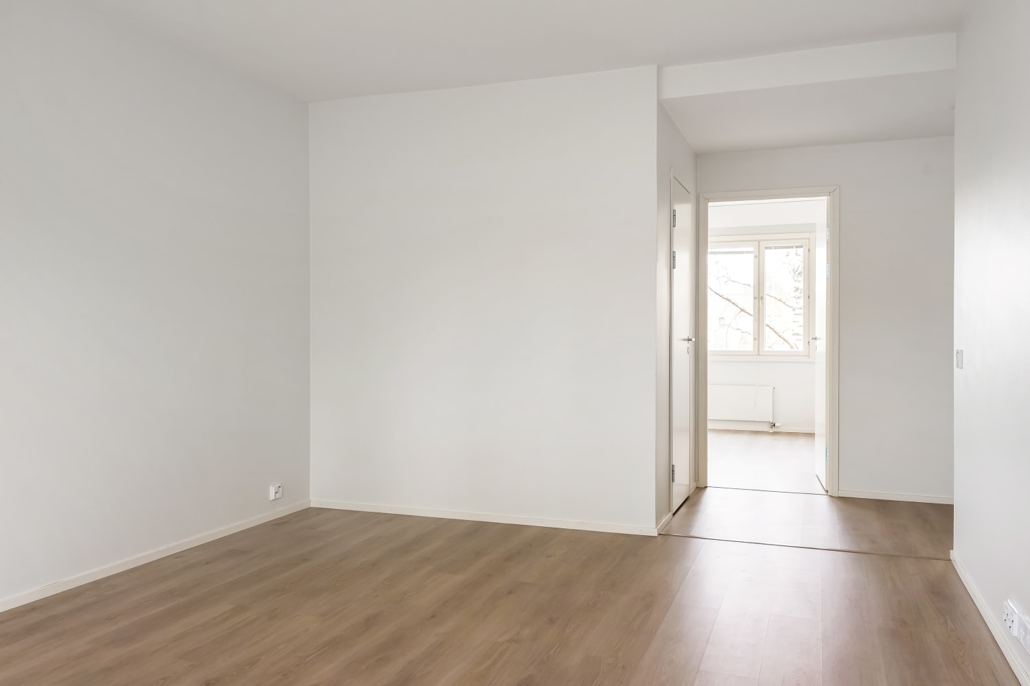 This spacious through-apartment one-bedroom offers a bright, open-plan living room with access to a south-facing glassed-in balcony, perfect for enjoying even on cooler evenings. The generously sized kitchen can comfortably accommodate a large dining table, making it an inviting space for hosting guests. A separate walk-in closet provides ample storage, making everyday life easier and more organized.