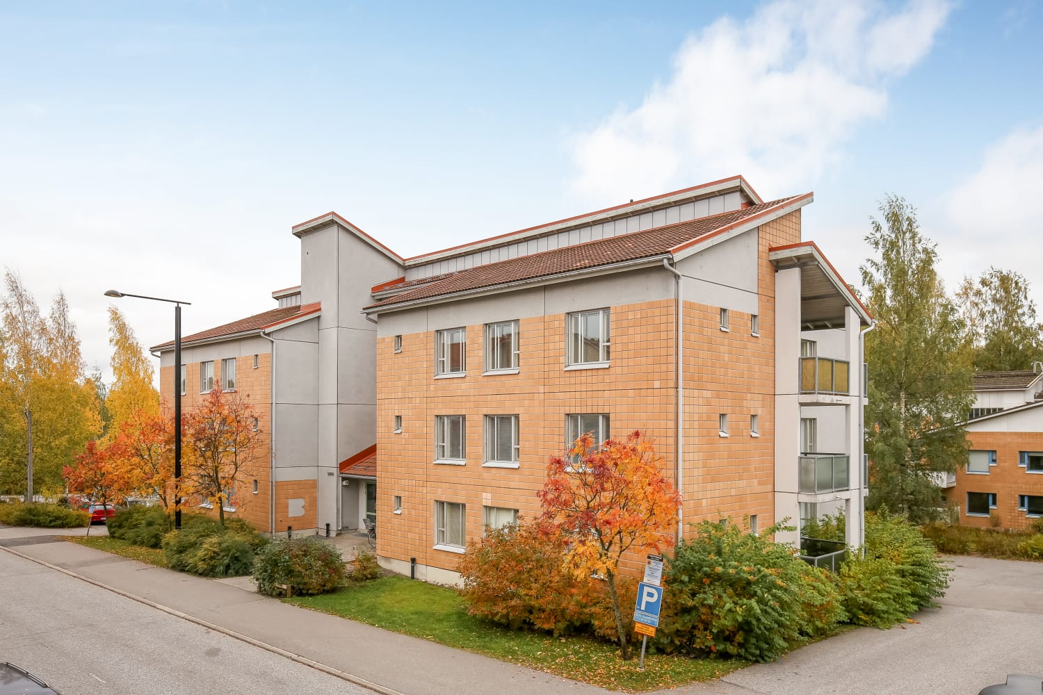 This two-building complex is located at the southeast edge of Myyrmäki next to the parks and fields of Vaskipuisto. The units are bright and have a spacious feel. The floors are done in vinyl flooring or laminate. Most bathrooms have wet area vinyl flooring and tiled walls. All units feature spacious balconies or small private gardens. The kitchens have space for a dishwasher and bathrooms space for a washing machine.