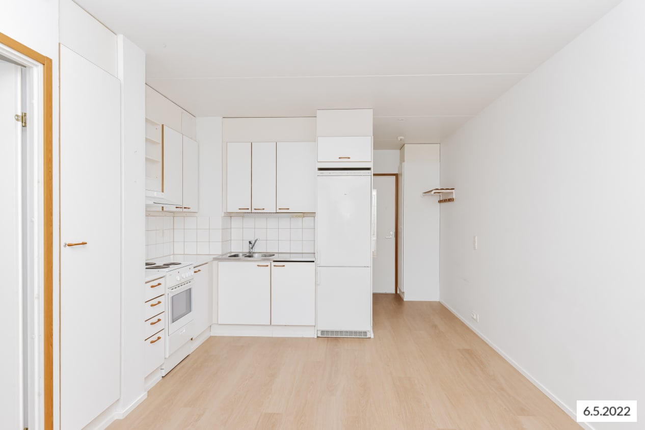 This two-building complex is located at the southeast edge of Myyrmäki next to the parks and fields of Vaskipuisto. The units are bright and have a spacious feel. The floors are done in vinyl flooring or laminate. Most bathrooms have wet area vinyl flooring and tiled walls. All units feature spacious balconies or small private gardens. The kitchens have space for a dishwasher and bathrooms space for a washing machine.