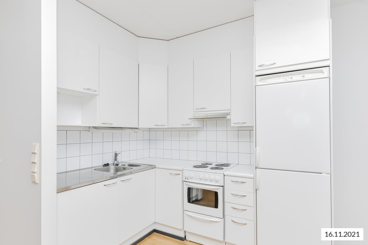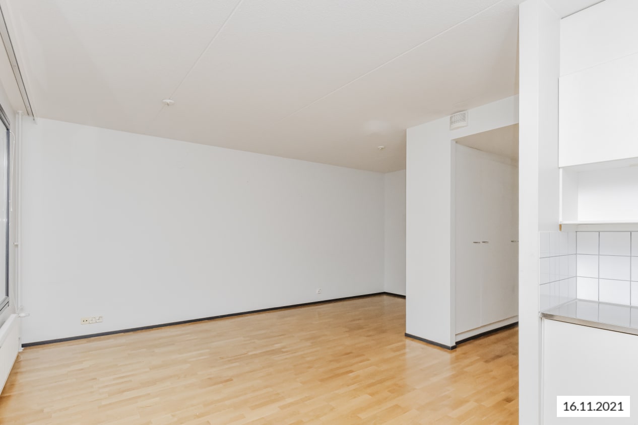 A spacious studio apartment has become available in a great location close to the services of Myyrmäki centre, with a south-facing glazed balcony. The well-organised layout features an alcove and space for a dining table by the kitchenette window. The apartment's parquet floors and fully tiled bathroom enhance the home's comfort pleasantly.
