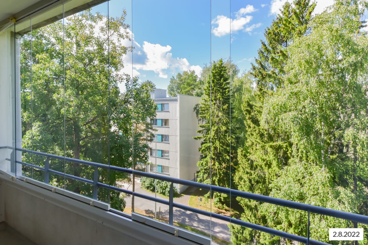The glassed-in west-facing balcony is a perfect spot to sit and enjoy summer evenings and other relaxing moments.