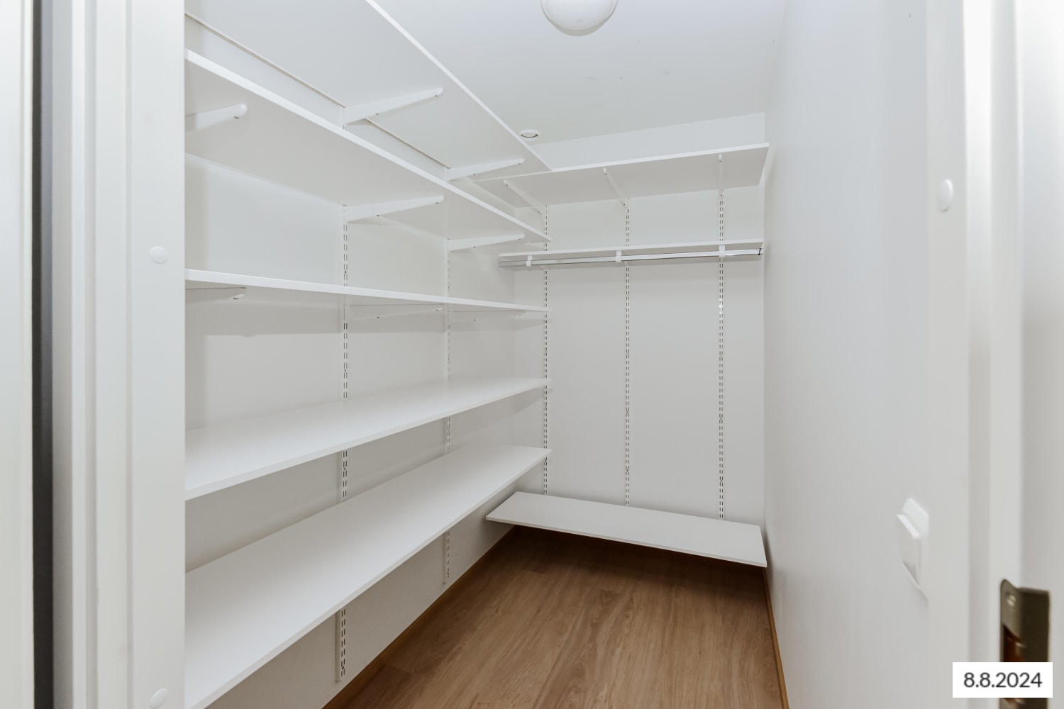 The spacious one-bedroom apartment's kitchen and living area merge to form a vast living space, which is complemented by a partially open bedroom. A glazed balcony faces the morning sun. For storing hobby equipment and other items, the apartment includes about 2.5 square meters of storage space and a roomy closet. There is no individual storage space for belongings in the basement or attic.