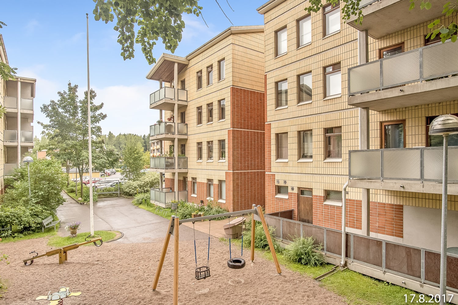 This bright top floor corner apartment features a spacious living area where the lounge and kitchen form a unified space. The balcony is perfect for enjoying tranquil moments and summer days. The apartment floors are easy-care laminate, and the larger bedroom includes a handy walk-in wardrobe.