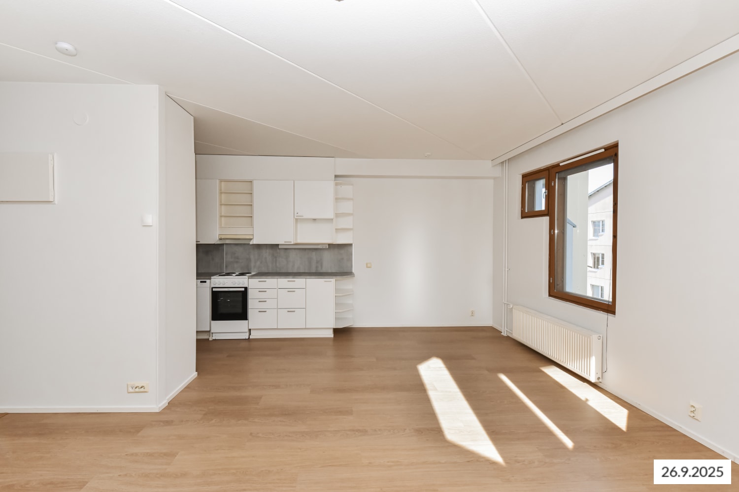 In this bright one-bedroom home, nature is close at hand. The cosy apartment is located on the fifth floor, offering lush views from its balcony. A private sauna adds a touch of luxury to your living experience, and the spacious kitchen and living room area is easy to decorate into your own home.