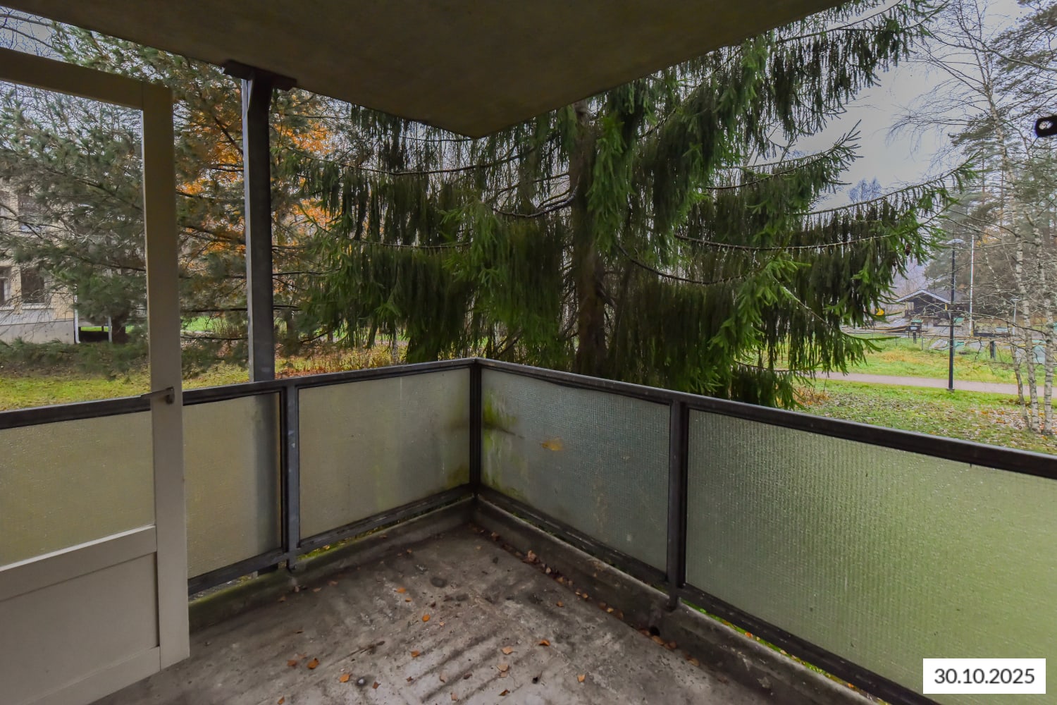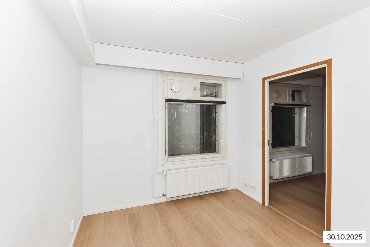Located near the lush Lammaslampi and on a spacious plot, this one-bedroom home has a unique layout. The kitchen seamlessly connects to the living room, creating an open and bright living space.