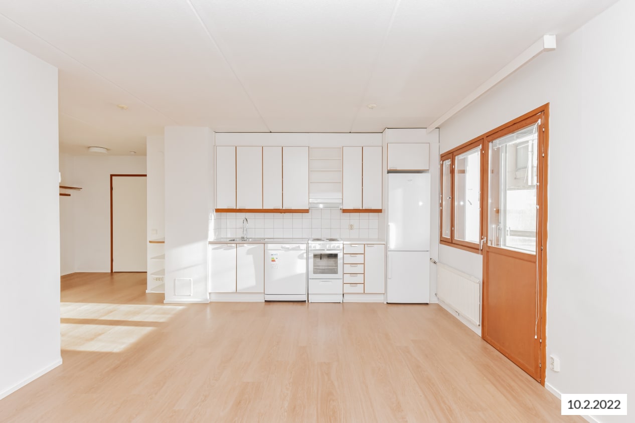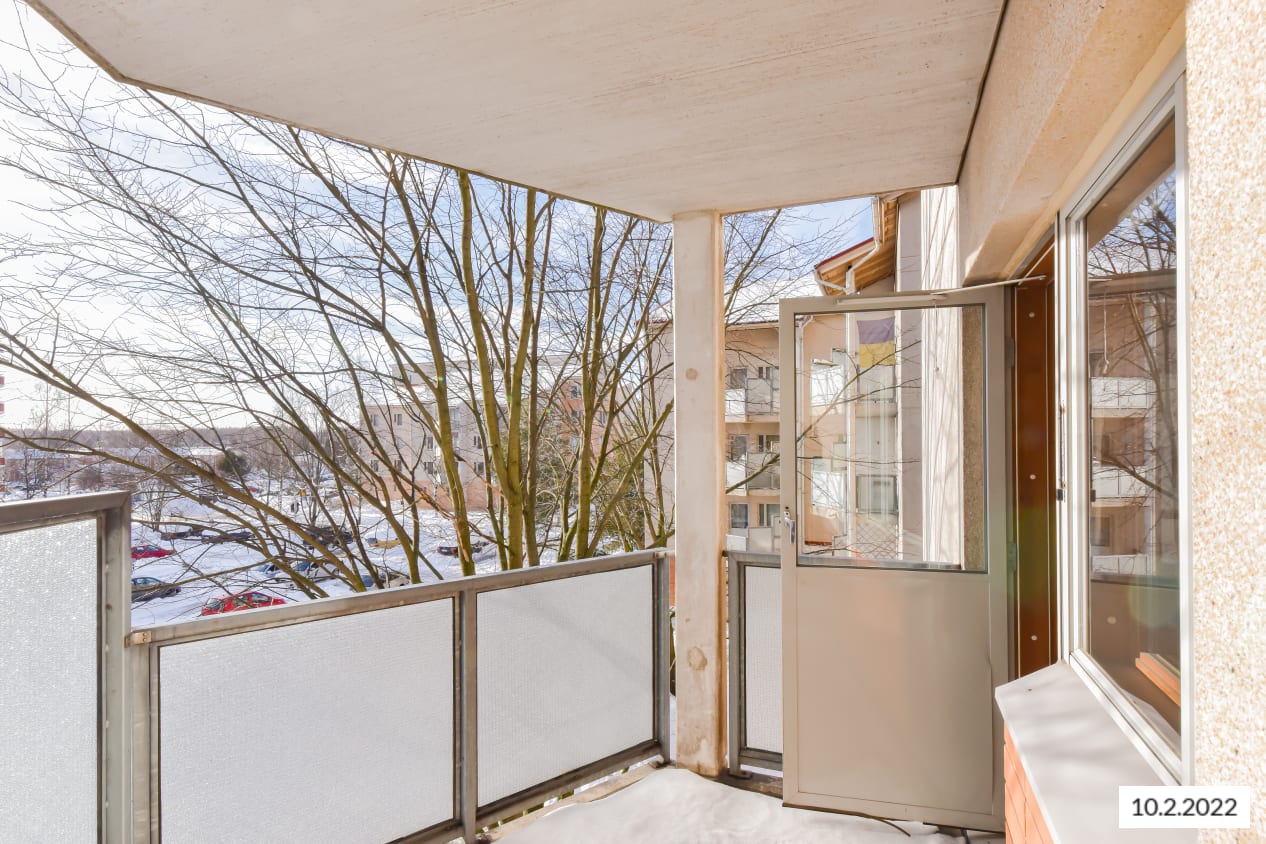 This complex of three apartment blocks has leafy and sheltered grounds. The layouts of the homes are clean and most feature a spacious living area consisting of an open-plan kitchen and living room. All apartments have a balcony or ground-level terrace and a private sauna. The decor scheme is light and there is space for a dishwasher and washing machine in all homes.