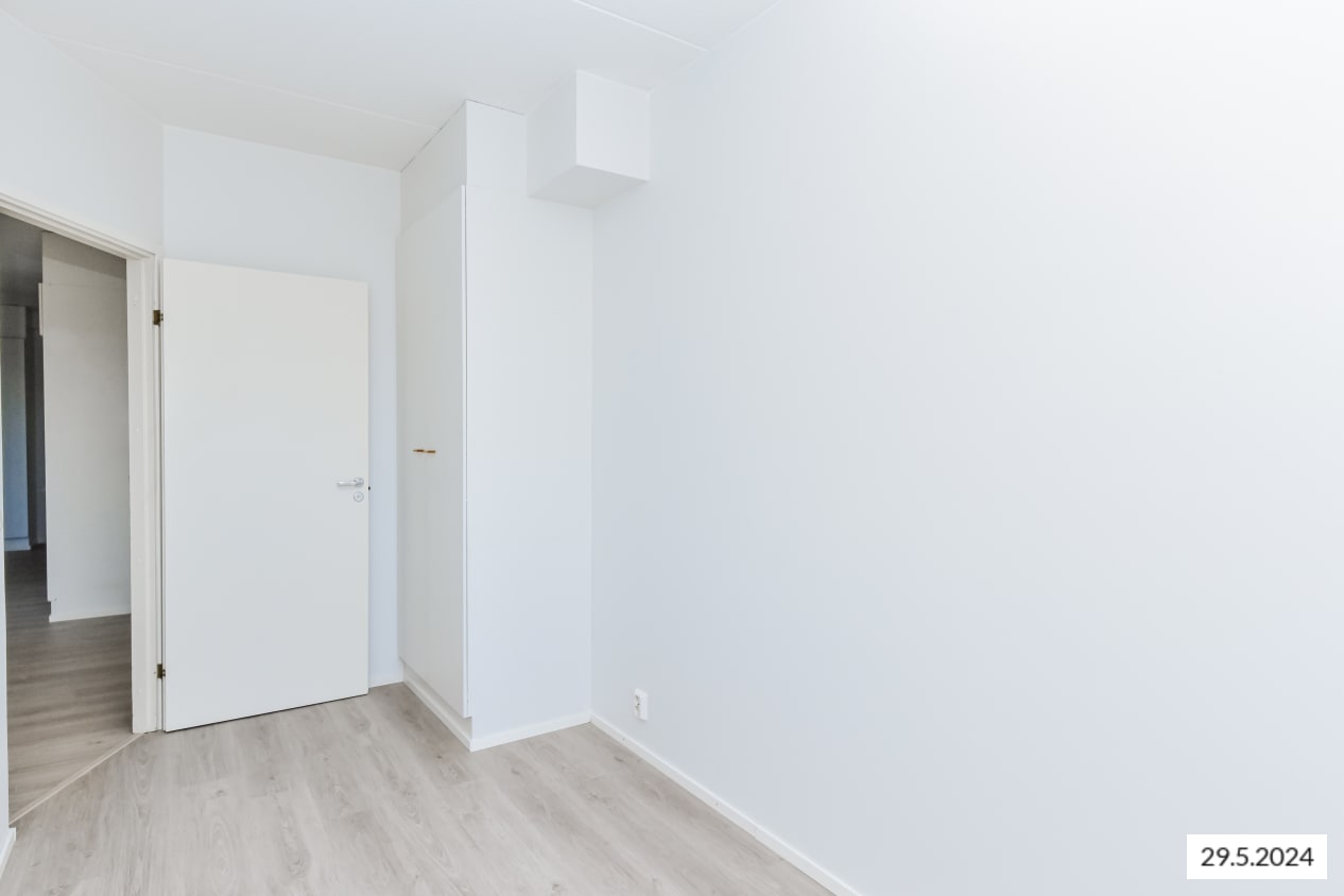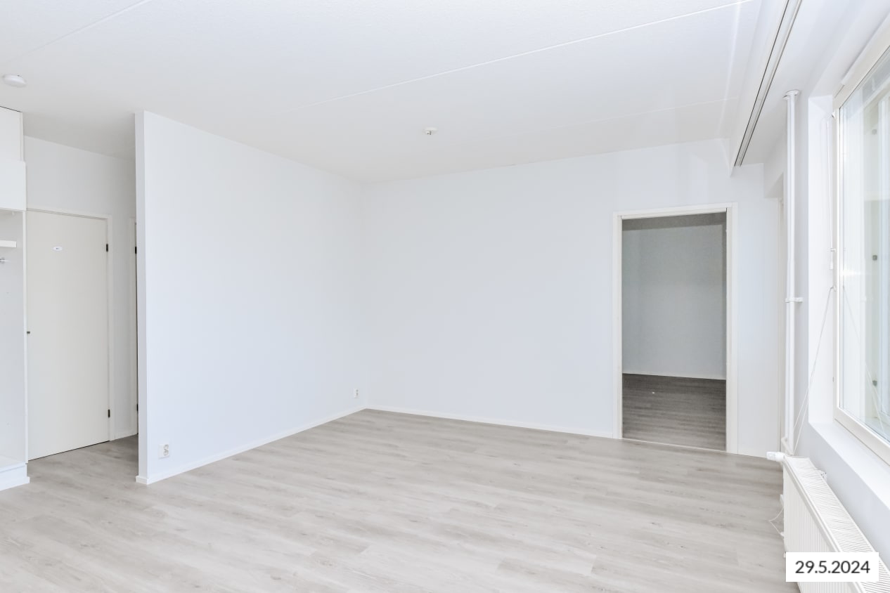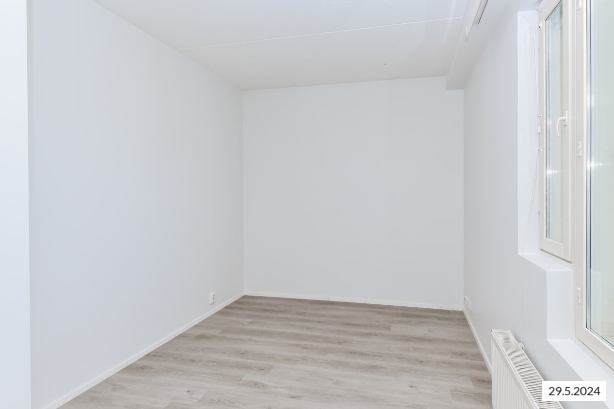 This bright and clean home has plenty of space to live in! It is well-suited for a family or as a shared apartment. The heart of the home is the spacious living room, which connects to the open kitchen. The kitchen offers ample cabinet space and cooking surfaces. It is equipped with a floor oven, stove, and refrigerator-freezer. A dishwasher can also be installed.