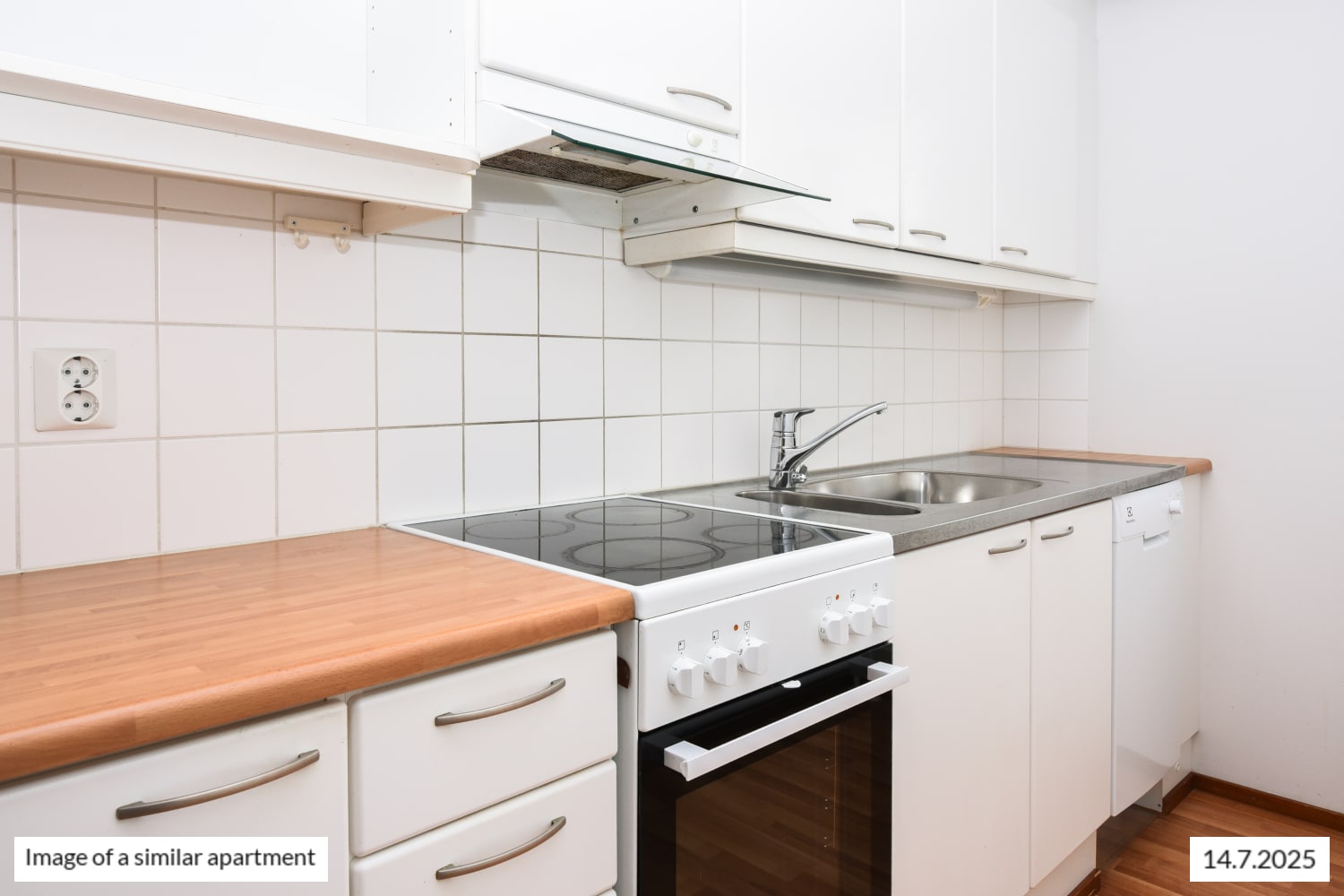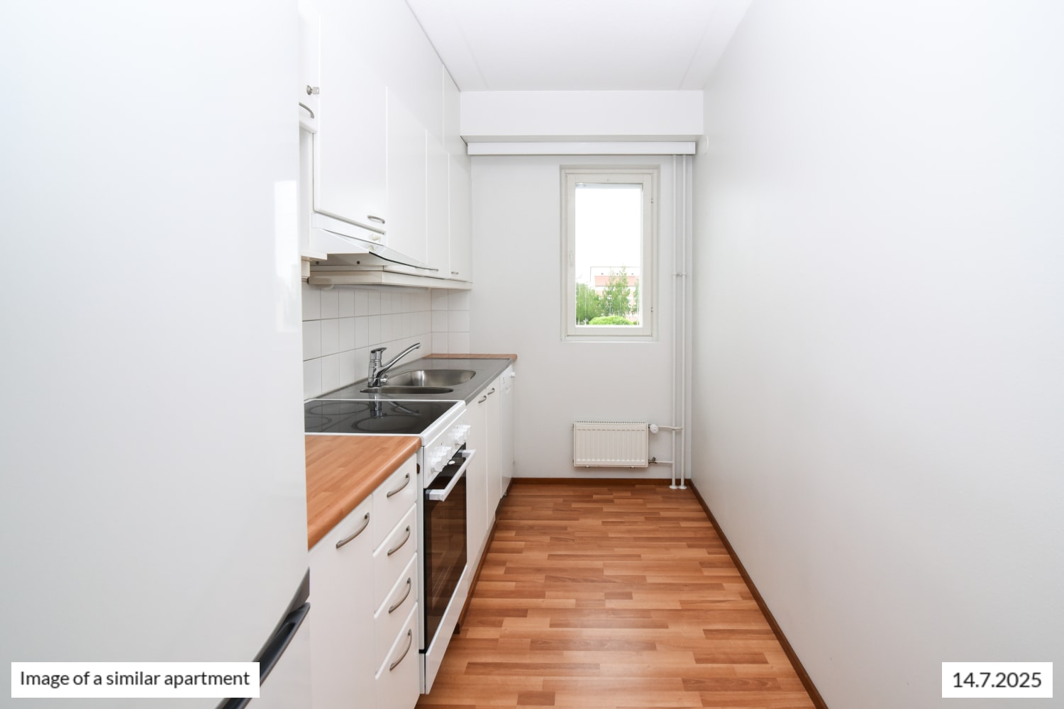 The kitchen is slightly separate from the living room, yet part of the same open space. In summer, you can extend your living area onto the balcony. The bedroom has spacious cupboards.