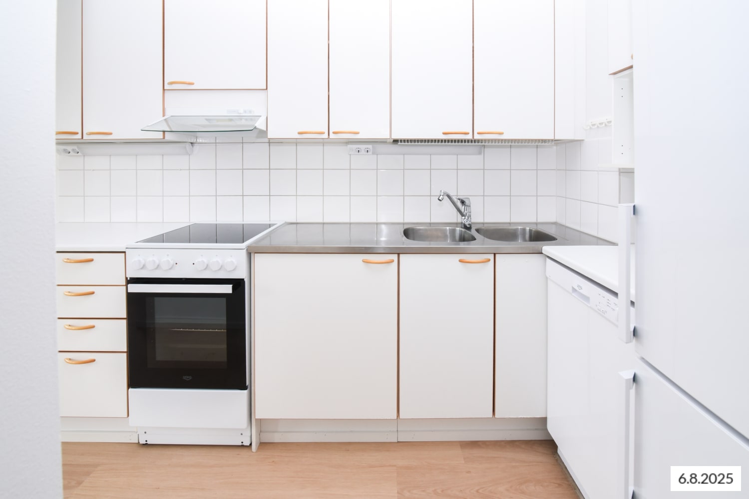 The living rooms have laminate flooring and the bathroom is tiled. The kitchen is equipped with a fridge-freezer, a four-burner electric stove, and a dishwasher to make everyday life easier. The bathroom also has space for a washing machine.