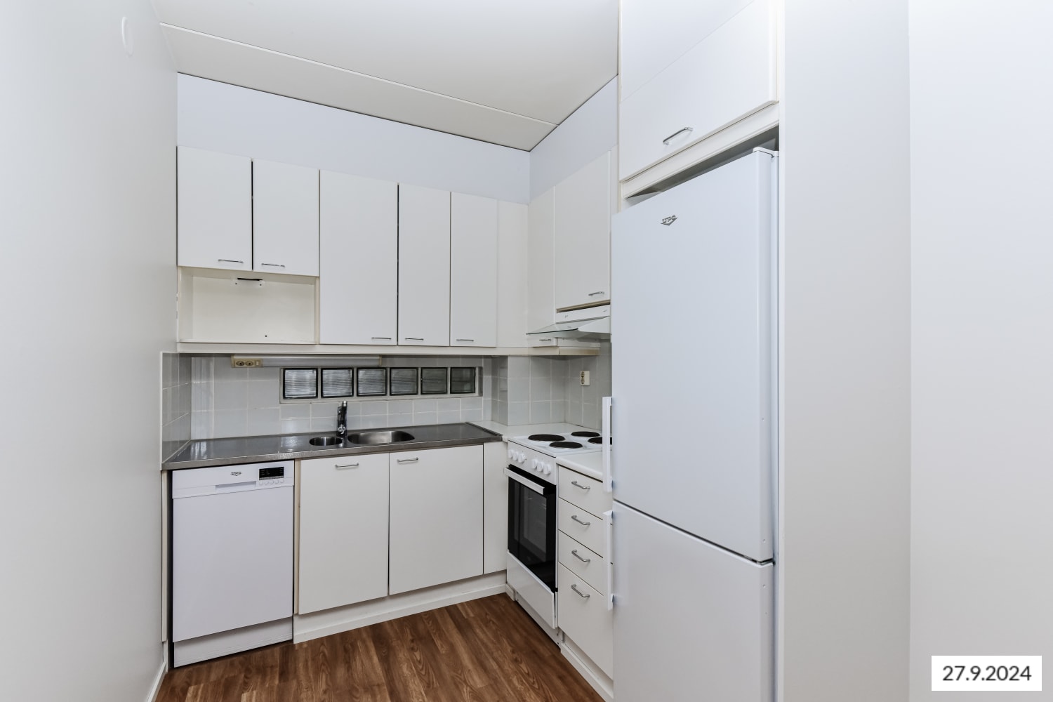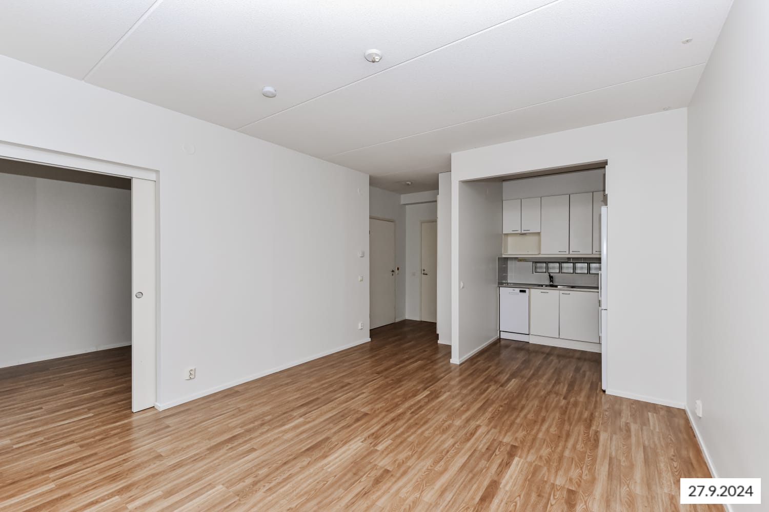The apartment has a spacious living room that connects to the kitchen area. The bedroom is separate and has built-in storage in the form of closets. Additionally, the hallway offers ample built-in storage space. The kitchen is equipped with a fridge-freezer and has provisions for a dishwasher, microwave, and a washer-dryer in the bathroom. The apartment is crowned by its own balcony, where you can extend your living space during the summer, perhaps with a cup of coffee.